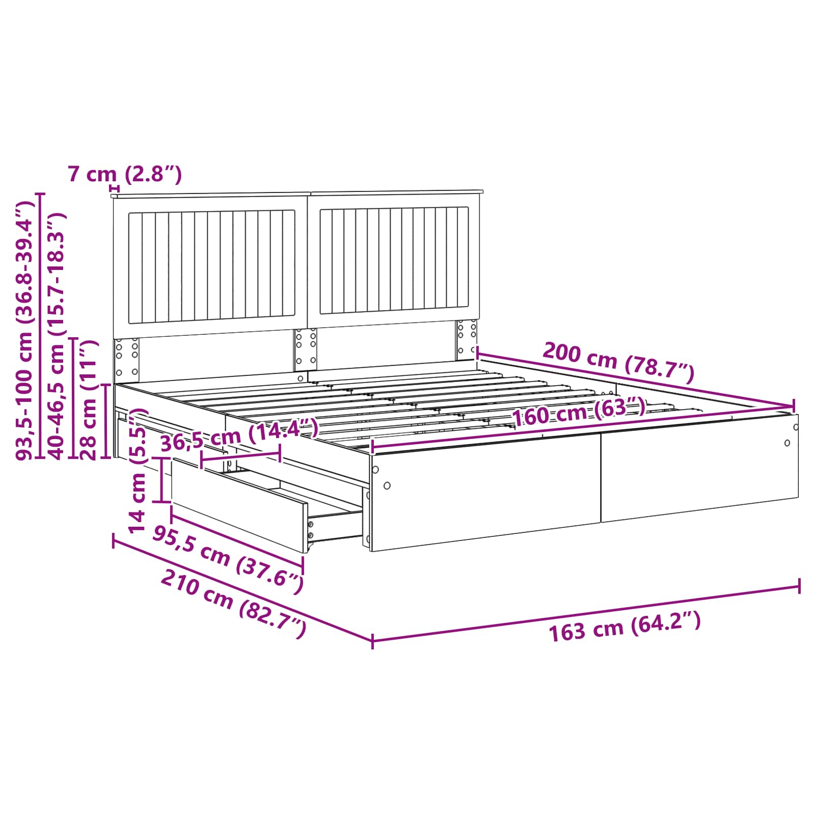 - Hoofdeinde maat: 163 x 7 x 100 Dimension_Unit (B x D x H)