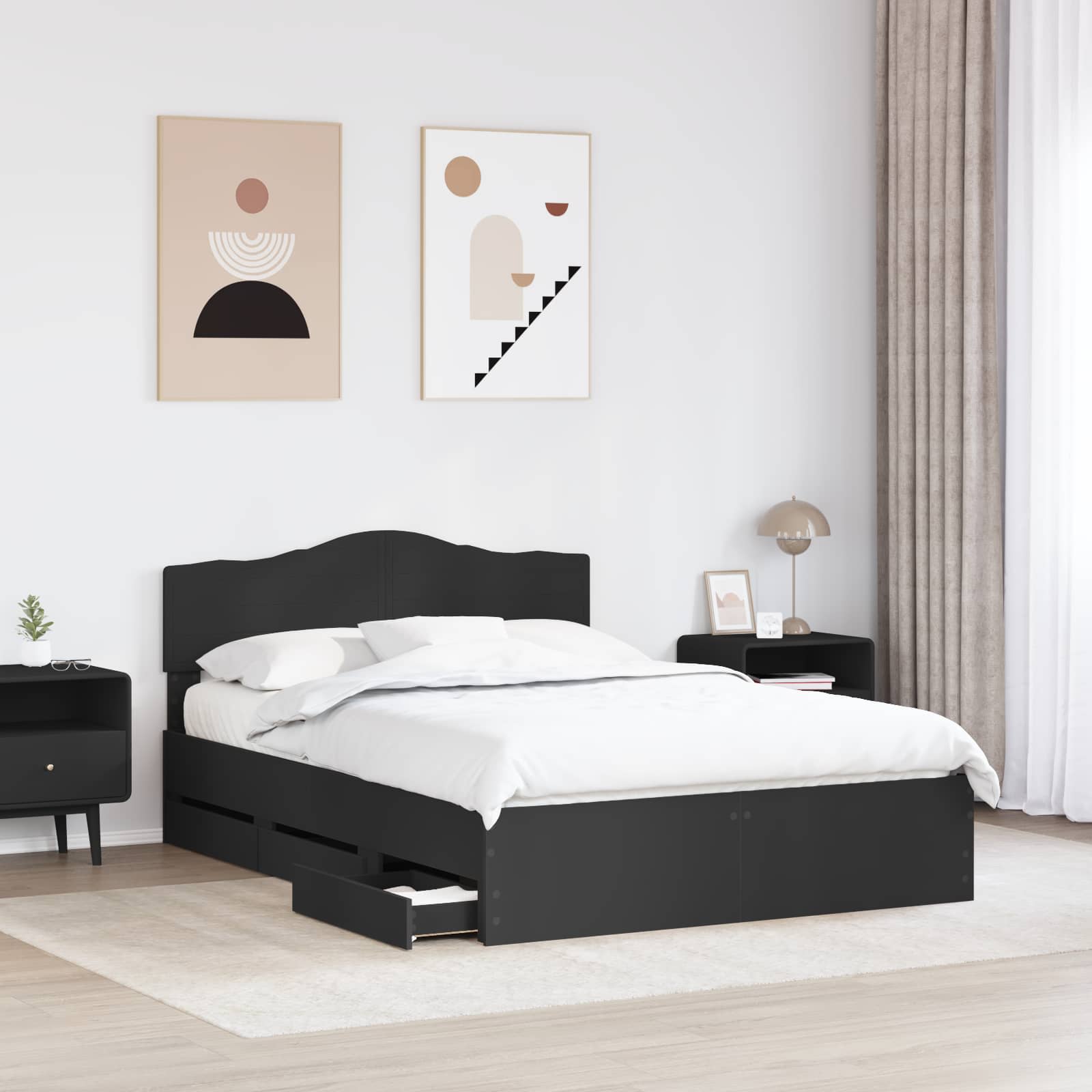 - Verborgen lades: Ingebouwd in het bed zijn verborgen lades van hetzelfde stevige hout. Deze lades bieden genoeg opslagruimte zonder dat dit ten koste gaat van de uitstraling van het bed. Perfect voor beddengoed of andere spullen die je graag uit het zicht houdt.