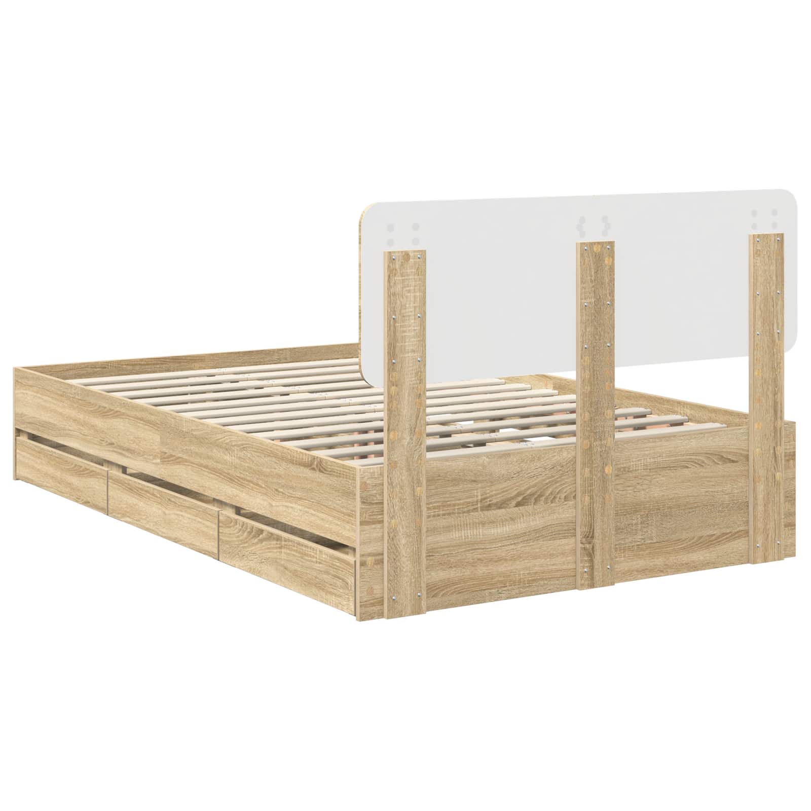 - Engineered houten hoofdeinde: Het hoofdeinde is gemaakt van engineered hout, wat zowel mooi als functioneel is. Het biedt een stevige rugleuning en voegt stijl toe aan het bed. De warme uitstraling van het hout maakt het gezellig in de slaapkamer.