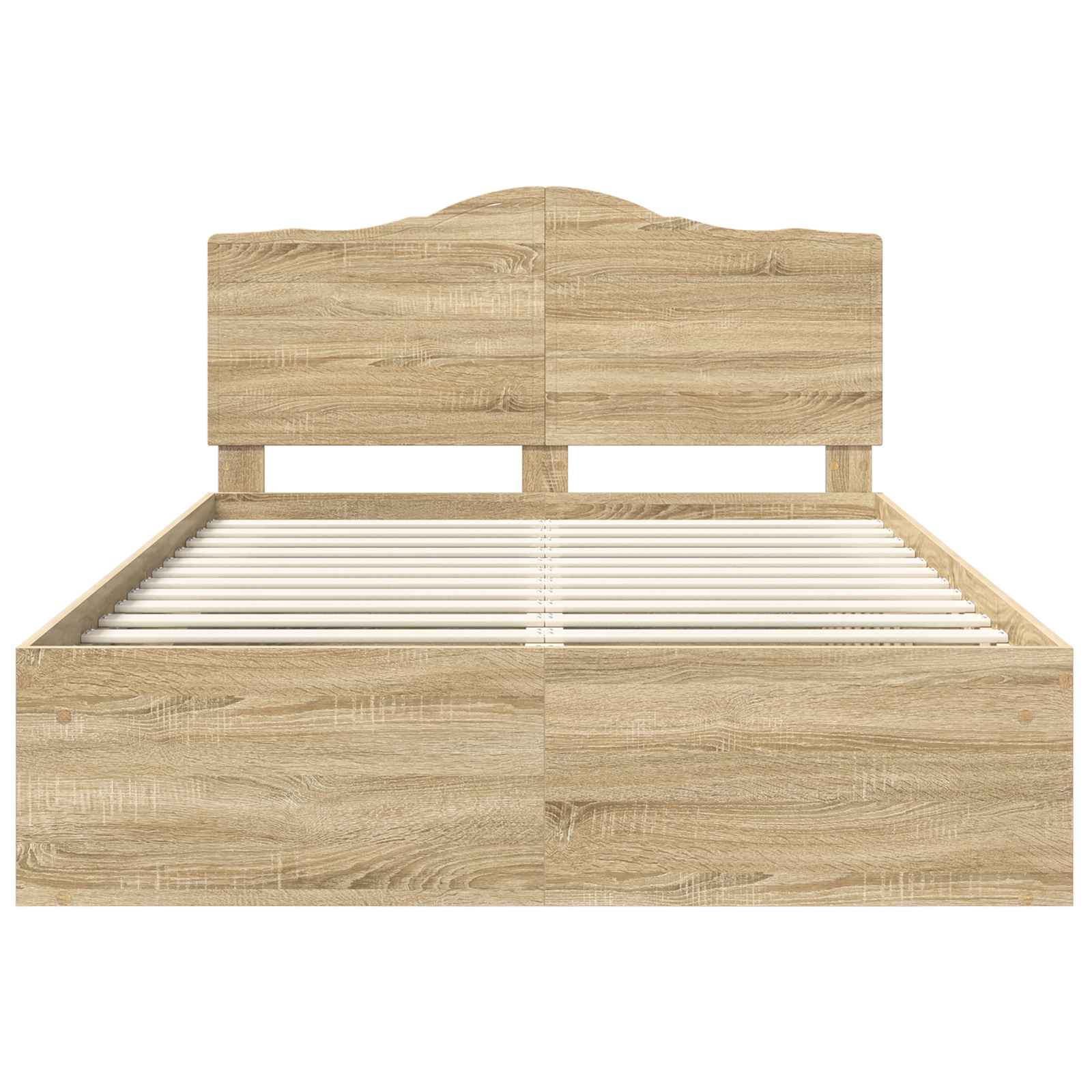 - Materialen: Gemaakt van bewerkt hout, dit frame ziet er niet alleen goed uit maar is ook betrouwbaar en stabiel. Het massieve grenenhouten hoofdbord voegt een mooie touch toe en past bij verschillende slaapkamerstijlen. Door de duurzame materialen gaat het bedframe lang mee en kan het dagelijks gebruik aan.