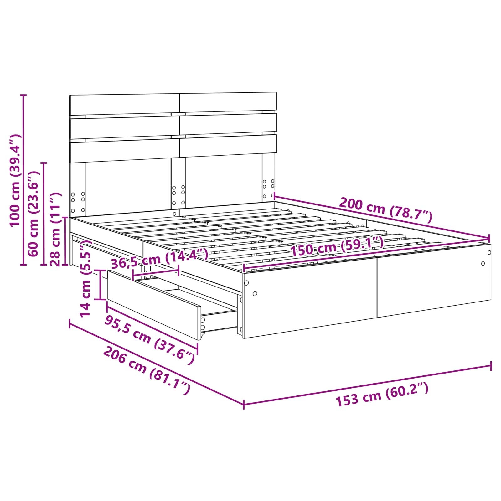 - Ingebouwde opslag Het bed komt met handige lades voor het organiseren van beddengoed en kleding. Dit slimme ontwerp houdt je slaapkamer netjes zonder extra meubels. De lades openen soepel, zodat je snel bij je spullen kunt.