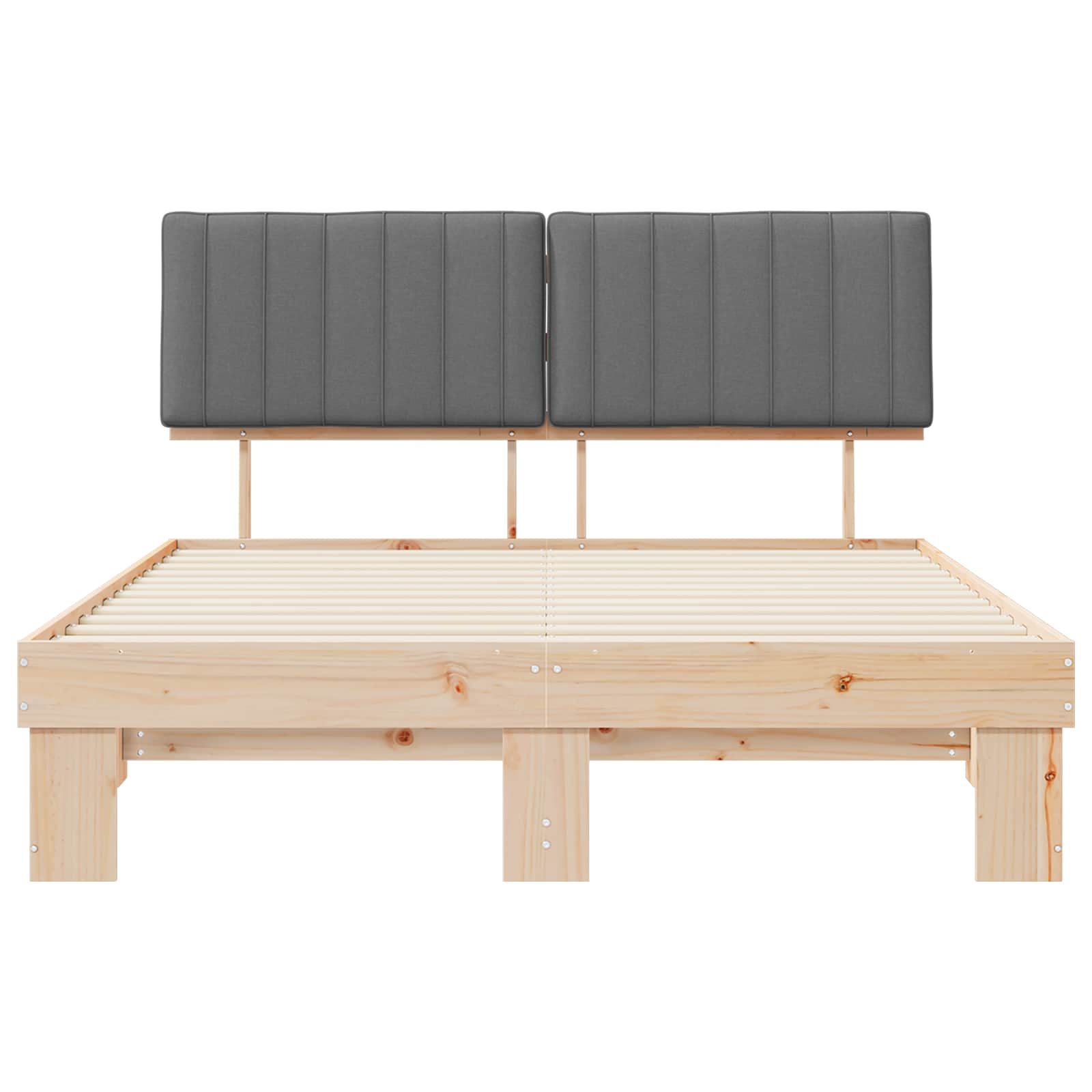 Dit houten bedframe met een gestoffeerd hoofdbord is een voorbeeld van modern ontwerp, met simpele lijnen en praktische elegantie, ideaal voor hedendaagse slaapkamers. Het massief grenenhout zorgt voor een stevige en stijlvolle basis, die rust en harmonie in de kamer brengt. De bekleding op het hoofdbord zorgt voor extra comfort en maakt het geheel aantrekkelijker.