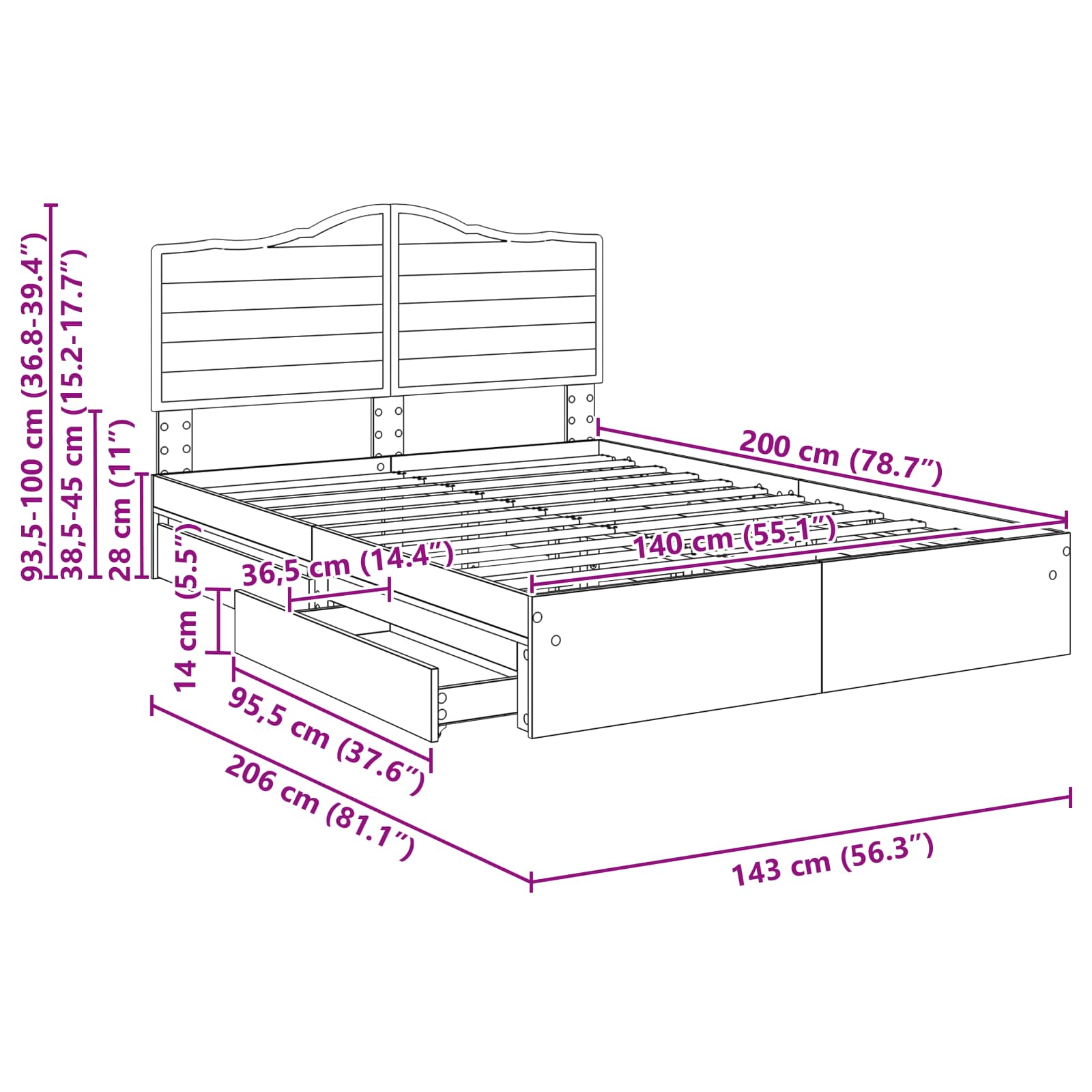 - Bewerkt hout materiaal Het bedframe, hoofdbord en de lades zijn gemaakt van hoogwaardig bewerkt hout. Dit materiaal zorgt voor een gladde afwerking die kromtrekken voorkomt, zodat het bed stevig en duurzaam blijft.