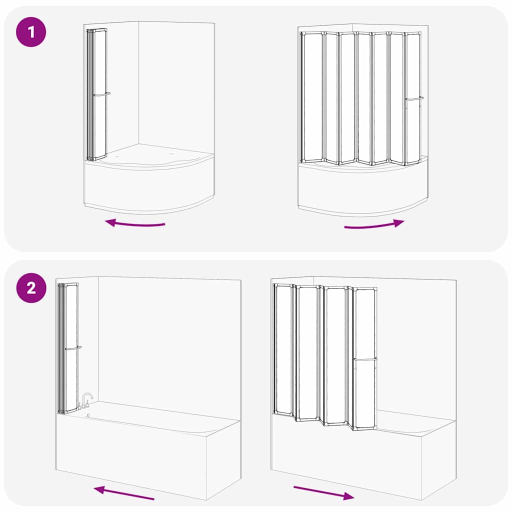 - Opvouwbare panelen voor extra flexibiliteit Het badscherm heeft opvouwbare panelen, waardoor je het makkelijk kunt opbergen als je het niet nodig hebt en toegang krijgt als je in of uit het bad stapt, zonder dat het te veel ruimte in beslag neemt.