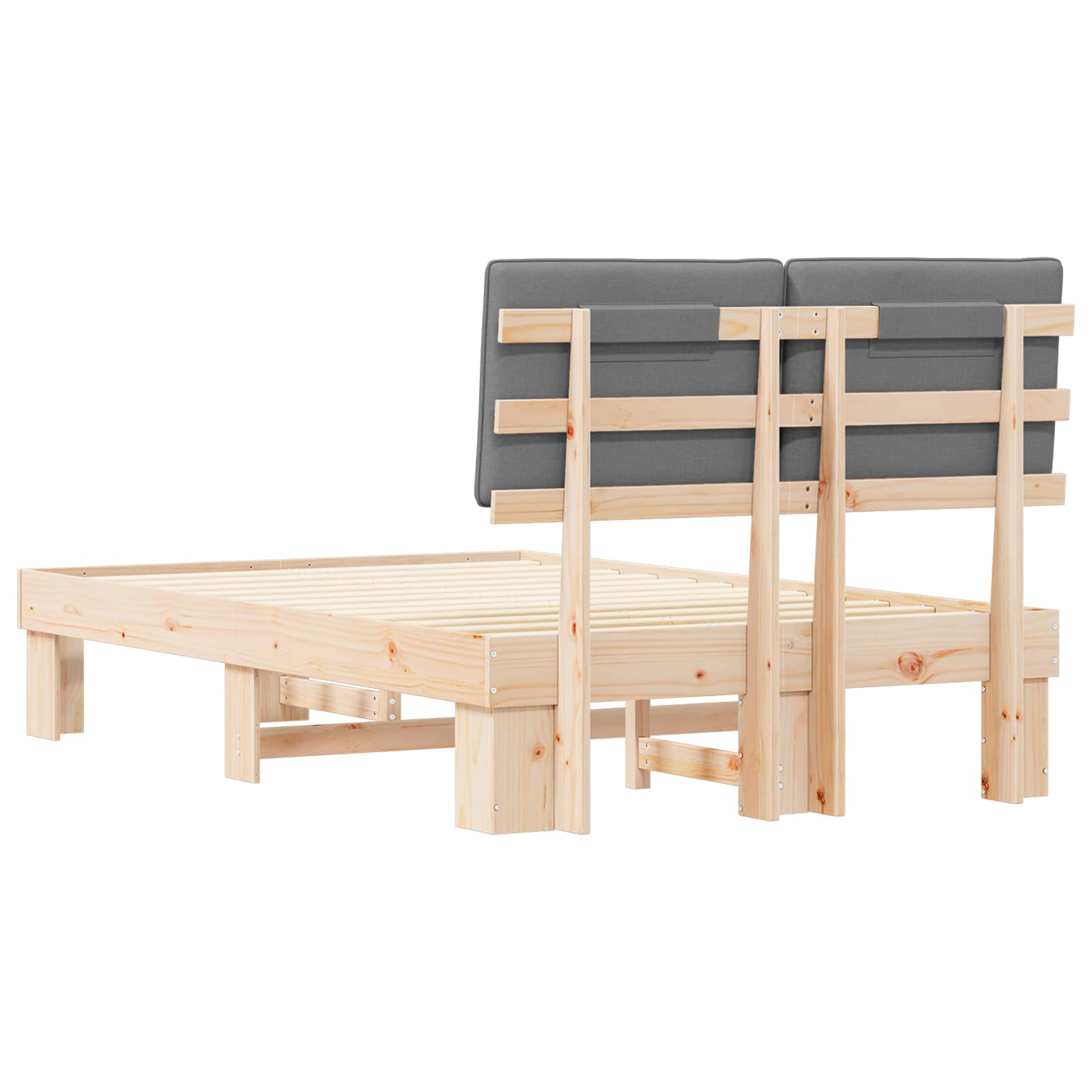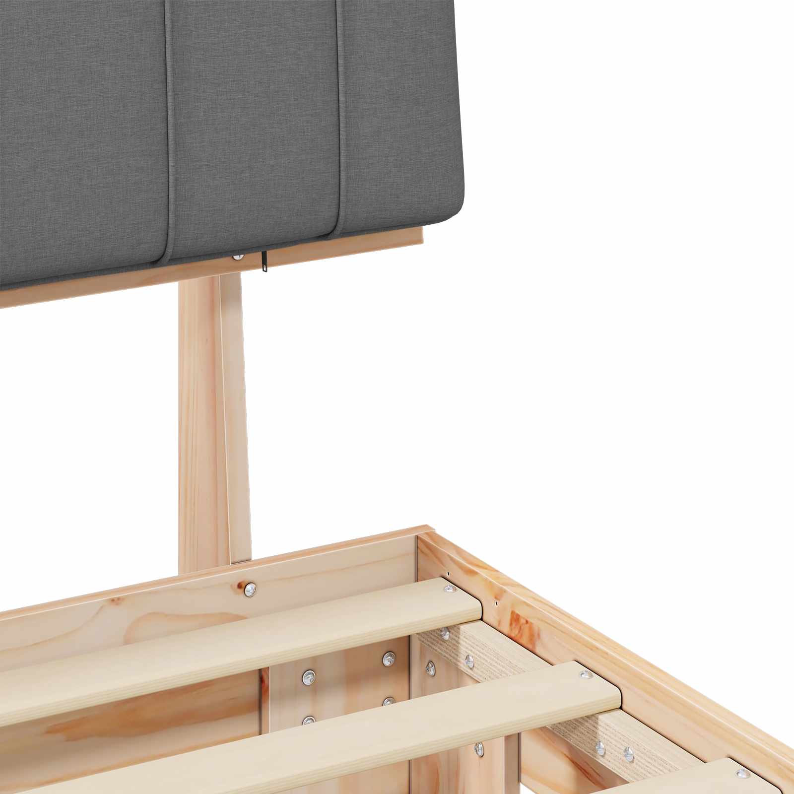 Dit houten bedframe met een gestoffeerd hoofdbord is een voorbeeld van modern ontwerp, met simpele lijnen en praktische elegantie, ideaal voor hedendaagse slaapkamers. Het massief grenenhout zorgt voor een stevige en stijlvolle basis, die rust en harmonie in de kamer brengt. De bekleding op het hoofdbord zorgt voor extra comfort en maakt het geheel aantrekkelijker.
