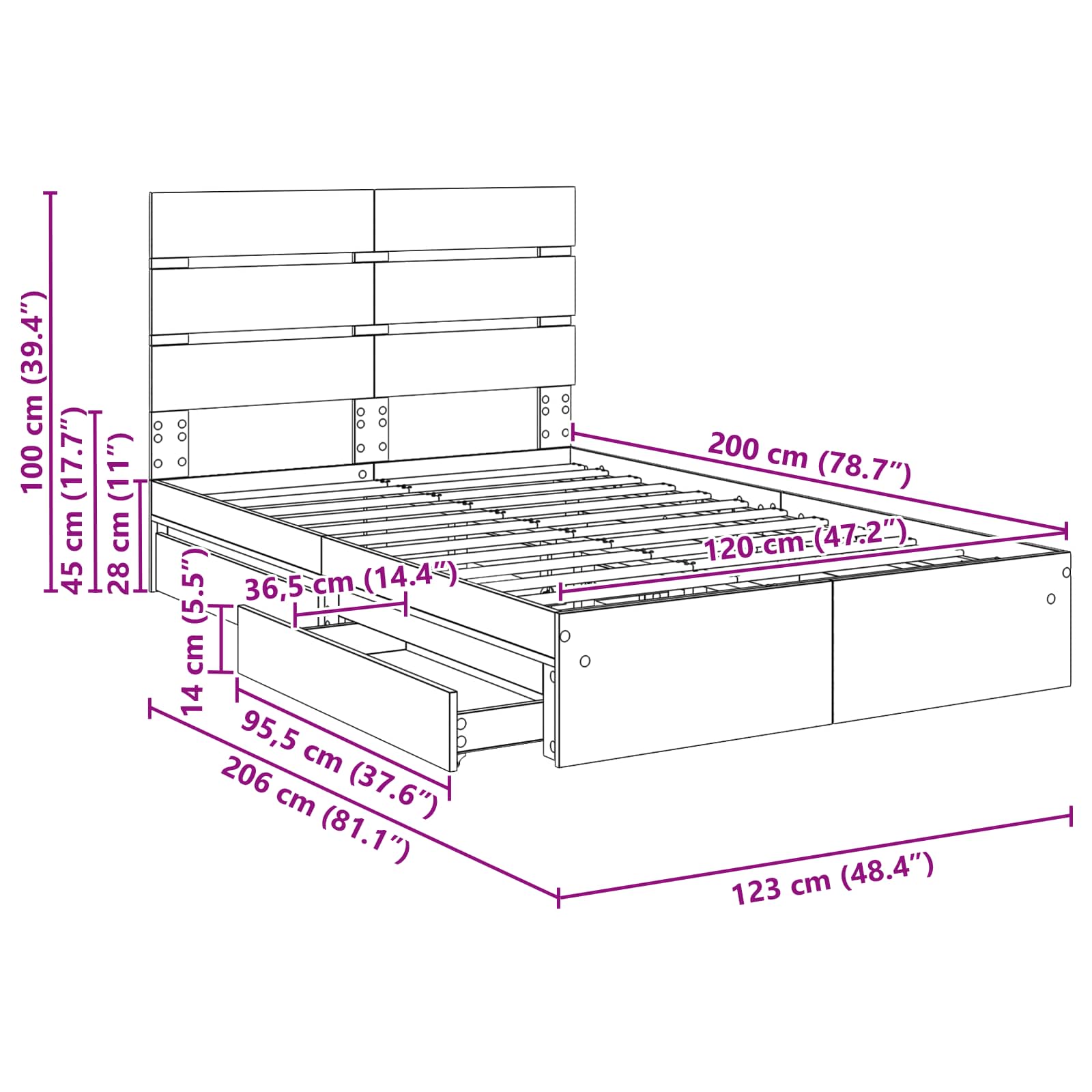 - Totale afmetingen: 206 x 123 x 100 cm (L x B x H)