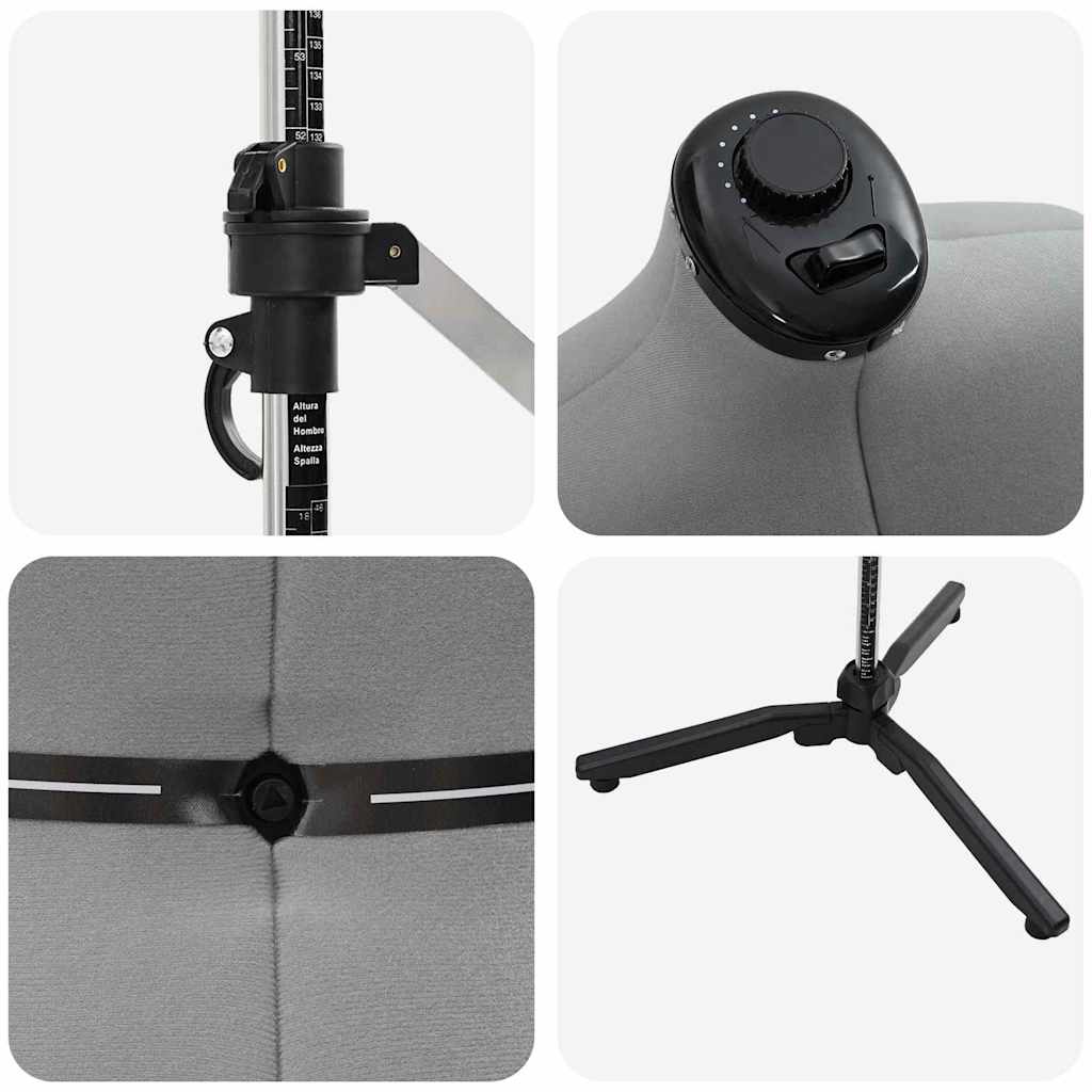 - Verstelbare functies: Met een hoogteverstelling van 95-160 cm en een volledige 360° rotatie past deze pasvorm zich aan verschillende lichaamstypes en stijlen aan. Het gebruiksvriendelijke aanpassingsmechanisme maakt snelle wijzigingen mogelijk, zodat je het kunt gebruiken voor verschillende kledingstukken, van blouses tot jurken.