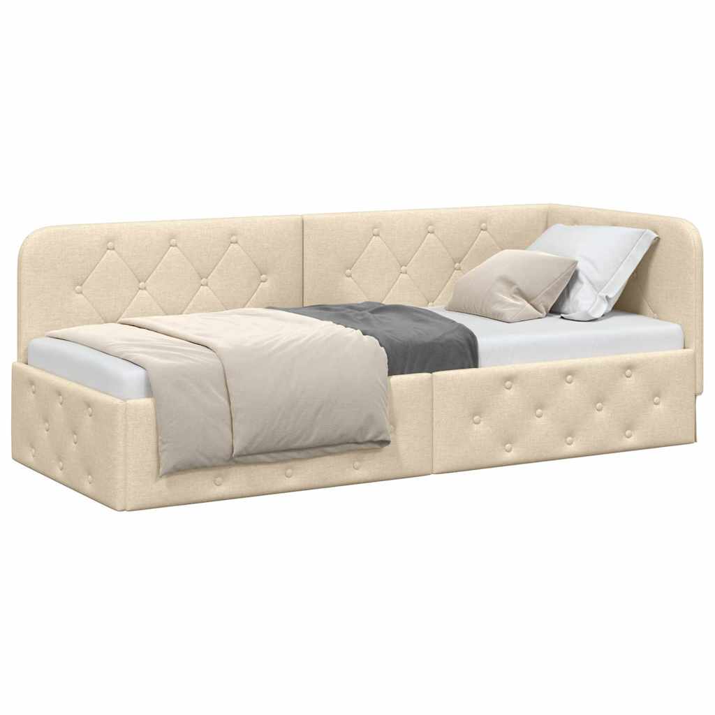 Dit stof hoekbedframe heeft een slim design dat stijl en functionaliteit moeiteloos combineert, ideaal voor elke moderne slaapkamer. Het L-vormige ontwerp maakt optimaal gebruik van de ruimte en biedt een comfortabele oplossing voor zitten en slapen. Met strakke lijnen en een minimalistische uitstraling past dit daybedframe perfect in hedendaagse interieurs, en het voldoet aan de wensen van iedereen die stijl en praktische oplossingen zoekt voor kleinere ruimtes.
