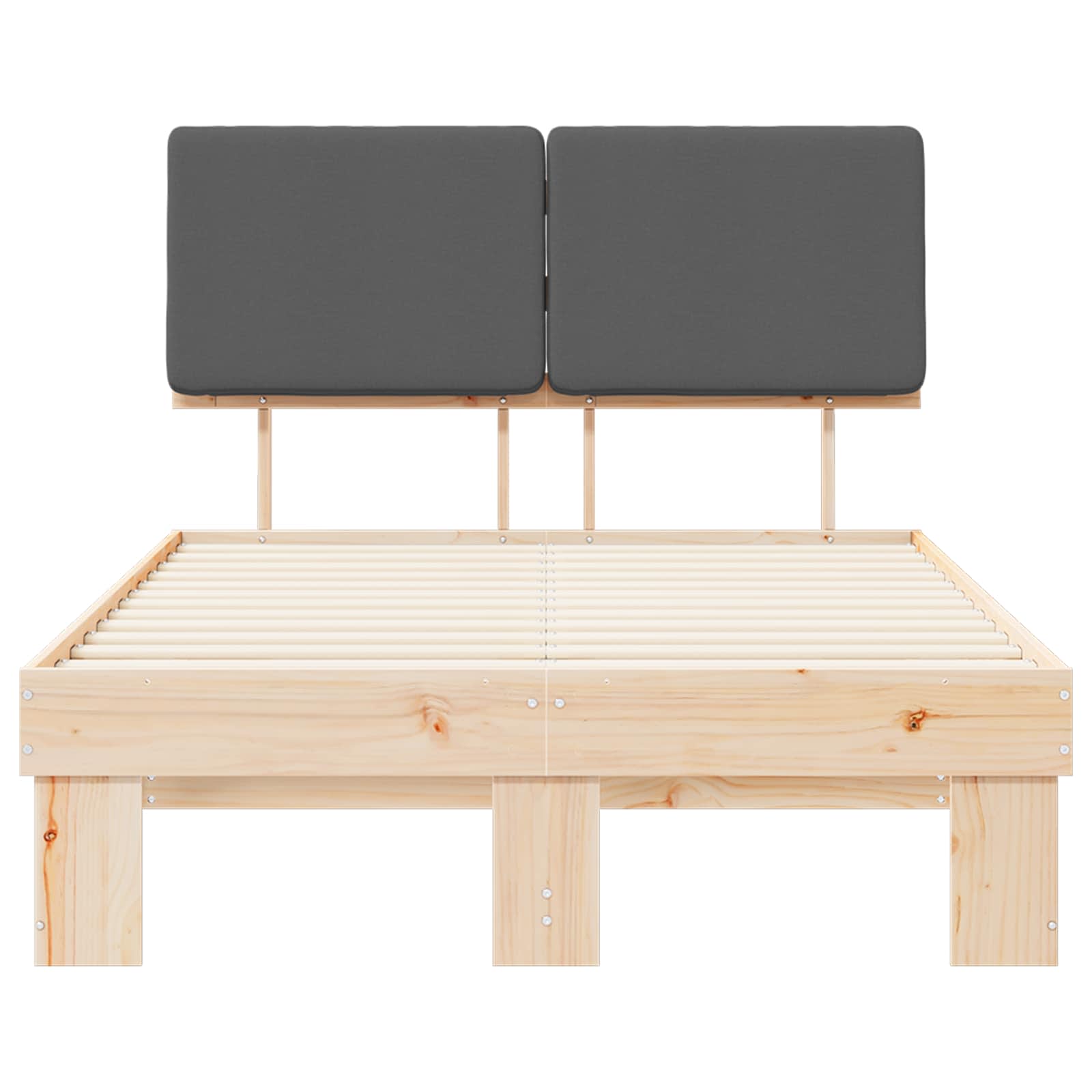 Dit houten bedframe met een gestoffeerd hoofdbord is een voorbeeld van modern ontwerp, met simpele lijnen en praktische elegantie, ideaal voor hedendaagse slaapkamers. Het massief grenenhout zorgt voor een stevige en stijlvolle basis, die rust en harmonie in de kamer brengt. De bekleding op het hoofdbord zorgt voor extra comfort en maakt het geheel aantrekkelijker.