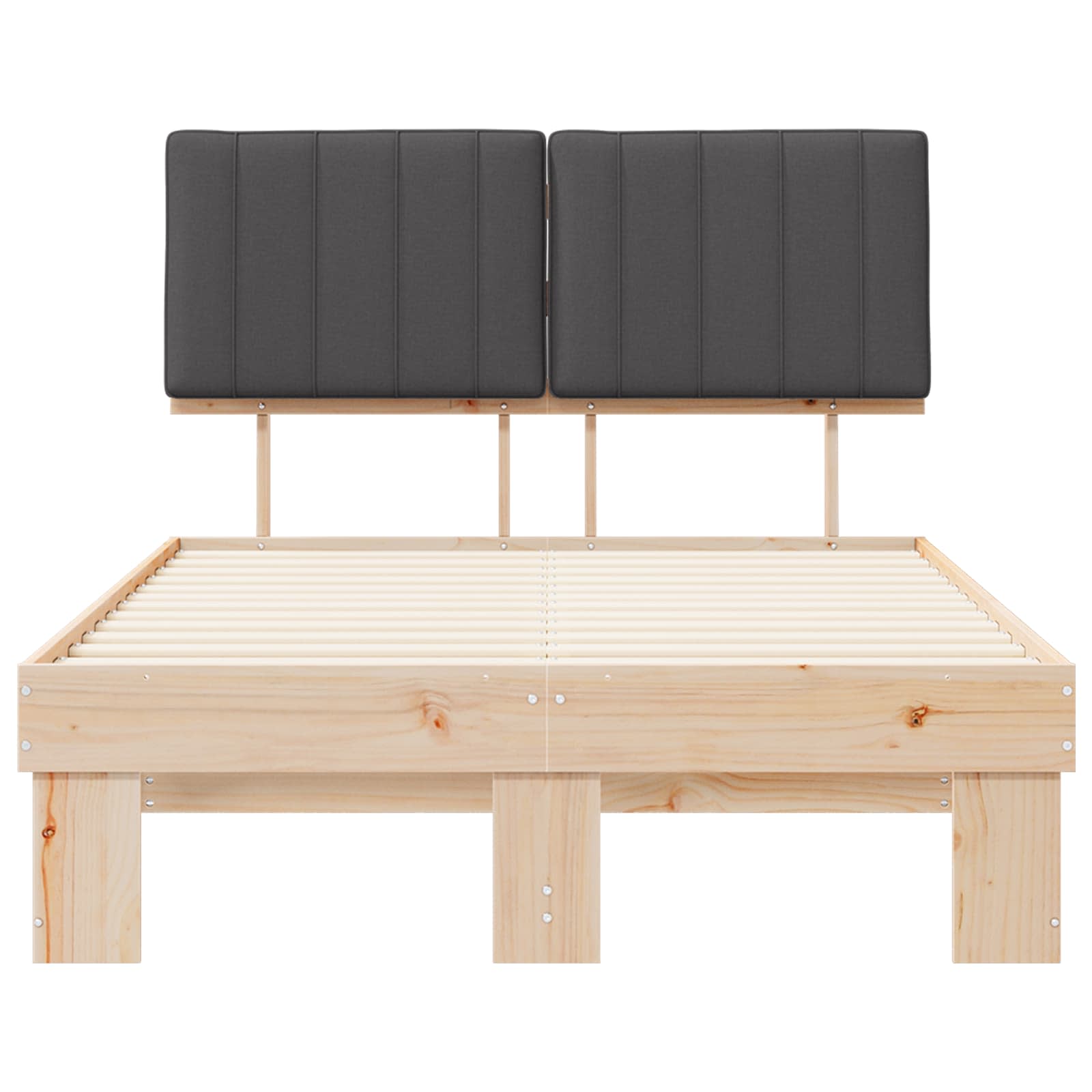 Dit houten bedframe met een gestoffeerd hoofdbord is een voorbeeld van modern ontwerp, met simpele lijnen en praktische elegantie, ideaal voor hedendaagse slaapkamers. Het massief grenenhout zorgt voor een stevige en stijlvolle basis, die rust en harmonie in de kamer brengt. De bekleding op het hoofdbord zorgt voor extra comfort en maakt het geheel aantrekkelijker.