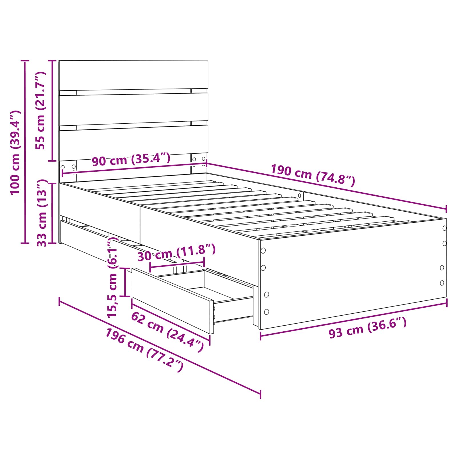 - Duurzaam engineered wood: Het frame is gemaakt van engineered wood dat bekend staat om zijn topkwaliteit en slijtvastheid. Dit zorgt ervoor dat het bedframe stevig blijft en lange tijd meegaat voor al je slaapbehoeften.