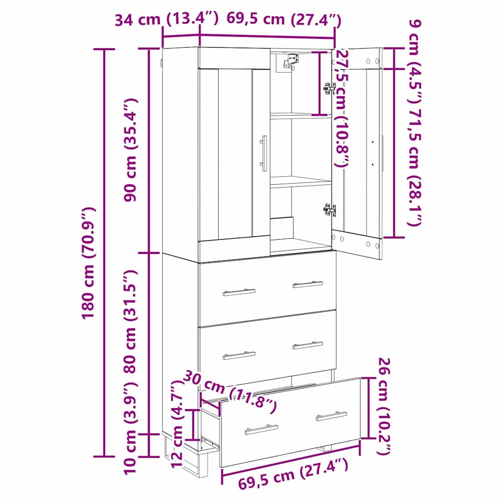 - 1 x Top voor highboard: 69,5 x 34 x 90 cm(LxWxH)