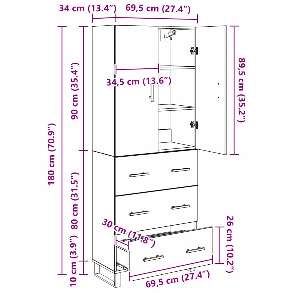 - Totale afmetingen: 69,5 x 34 x 180 cm (L x B x H)