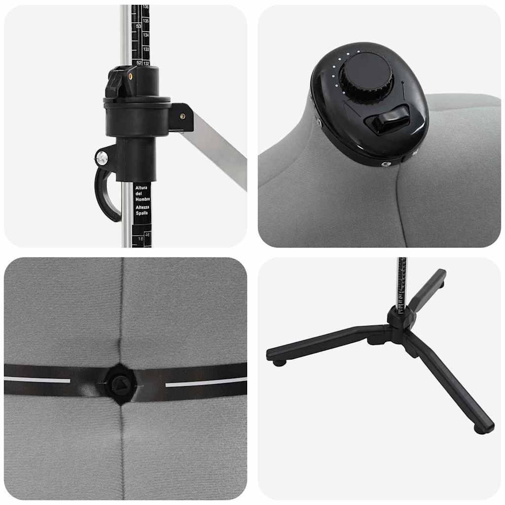 - Verstelbare functies: Met een hoogteverstelling van 95-160 cm en een volledige 360° rotatie past deze pasvorm zich aan verschillende lichaamstypes en stijlen aan. Het gebruiksvriendelijke aanpassingsmechanisme maakt snelle wijzigingen mogelijk, zodat je het kunt gebruiken voor verschillende kledingstukken, van blouses tot jurken.