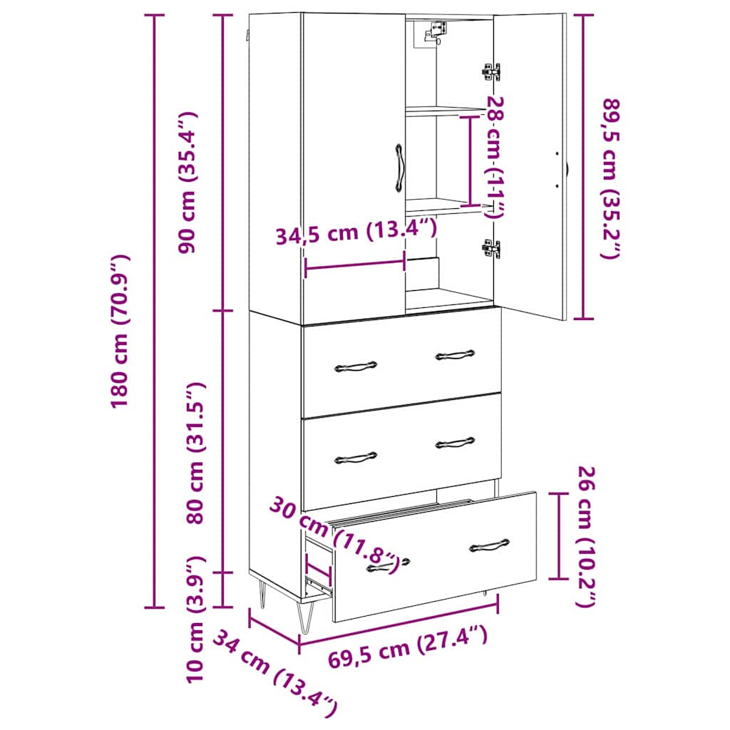 - Constructie van geengineerd hout: Deze hoogkast is gemaakt van sterk geengineerd hout, wat zorgt voor een stevige en duurzame constructie, perfect voor dagelijks gebruik met minimale slijtage. Het biedt een stabiele basis voor al je opbergbehoeften.