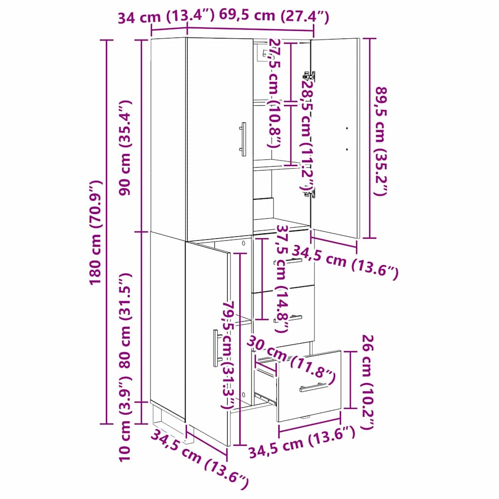 - Totale afmetingen: 69,5 x 34 x 180 cm (L x B x H)
