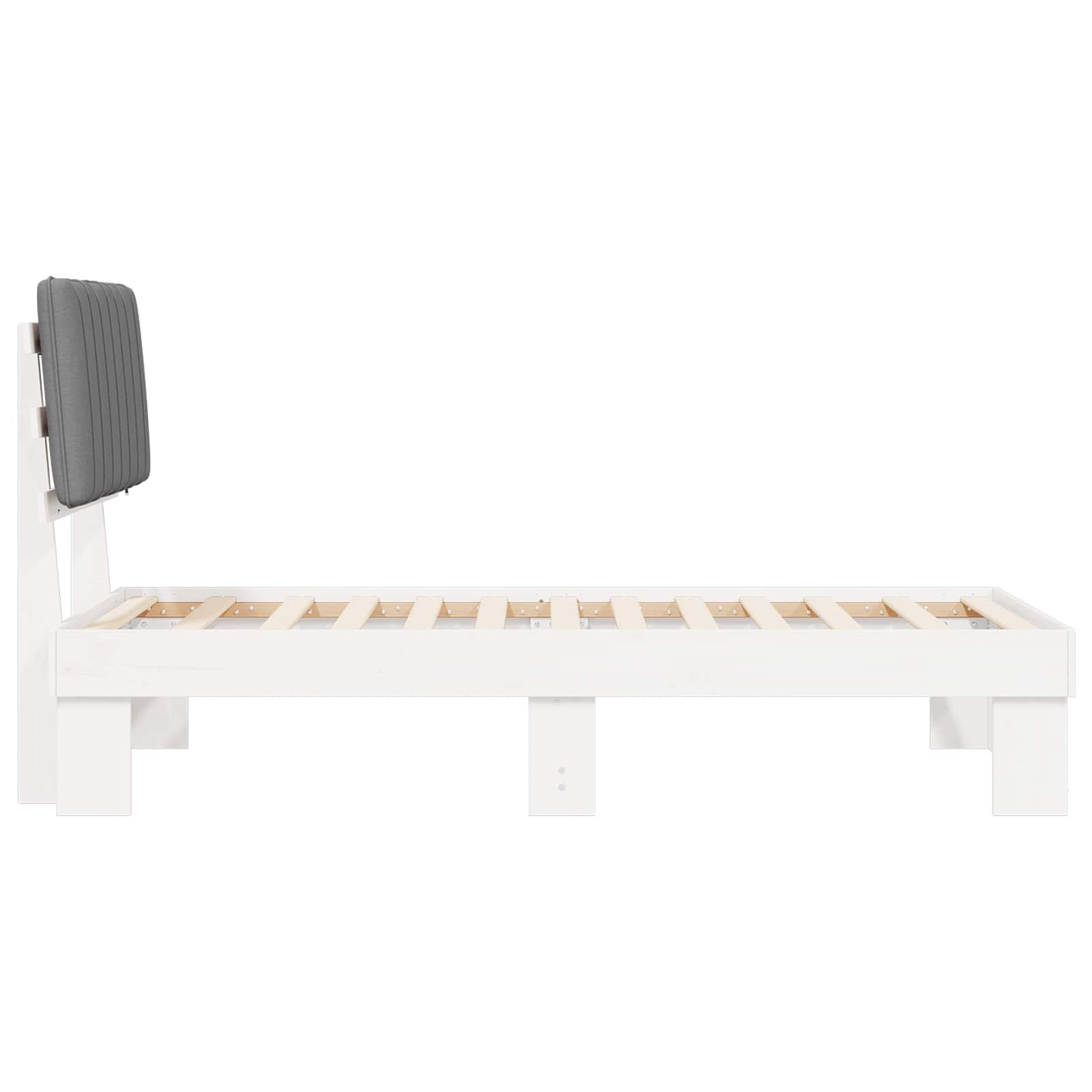 Dit houten bedframe met een gestoffeerd hoofdbord is een voorbeeld van modern ontwerp, met simpele lijnen en praktische elegantie, ideaal voor hedendaagse slaapkamers. Het massief grenenhout zorgt voor een stevige en stijlvolle basis, die rust en harmonie in de kamer brengt. De bekleding op het hoofdbord zorgt voor extra comfort en maakt het geheel aantrekkelijker.