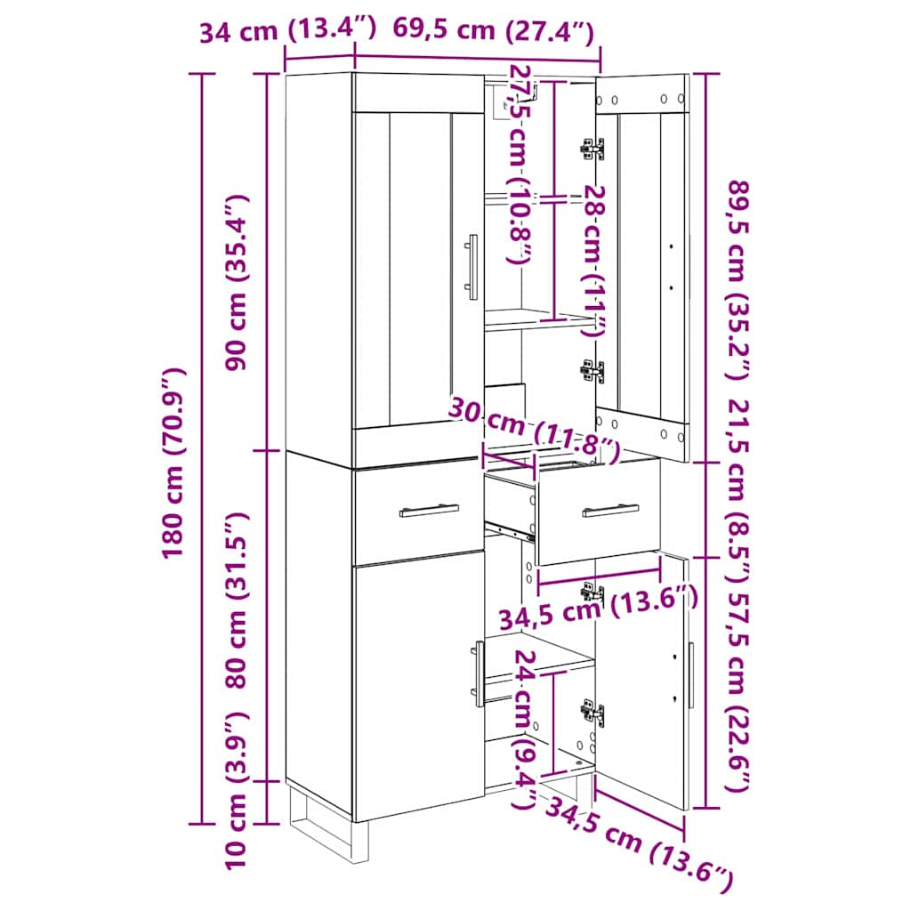 - Totale afmetingen: 69,5 x 34 x 180 cm (L x B x H)