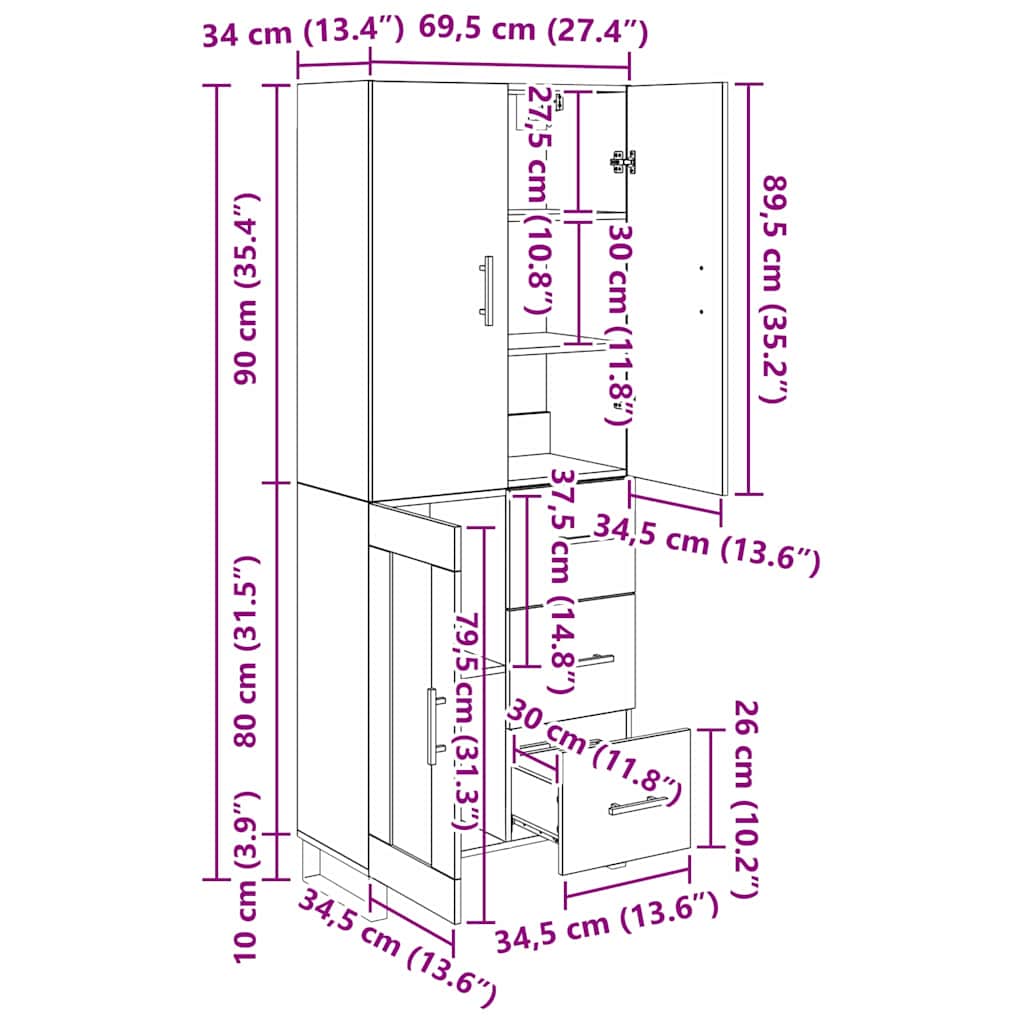 - Totale afmetingen: 69,5 x 34 x 180 cm (L x B x H)