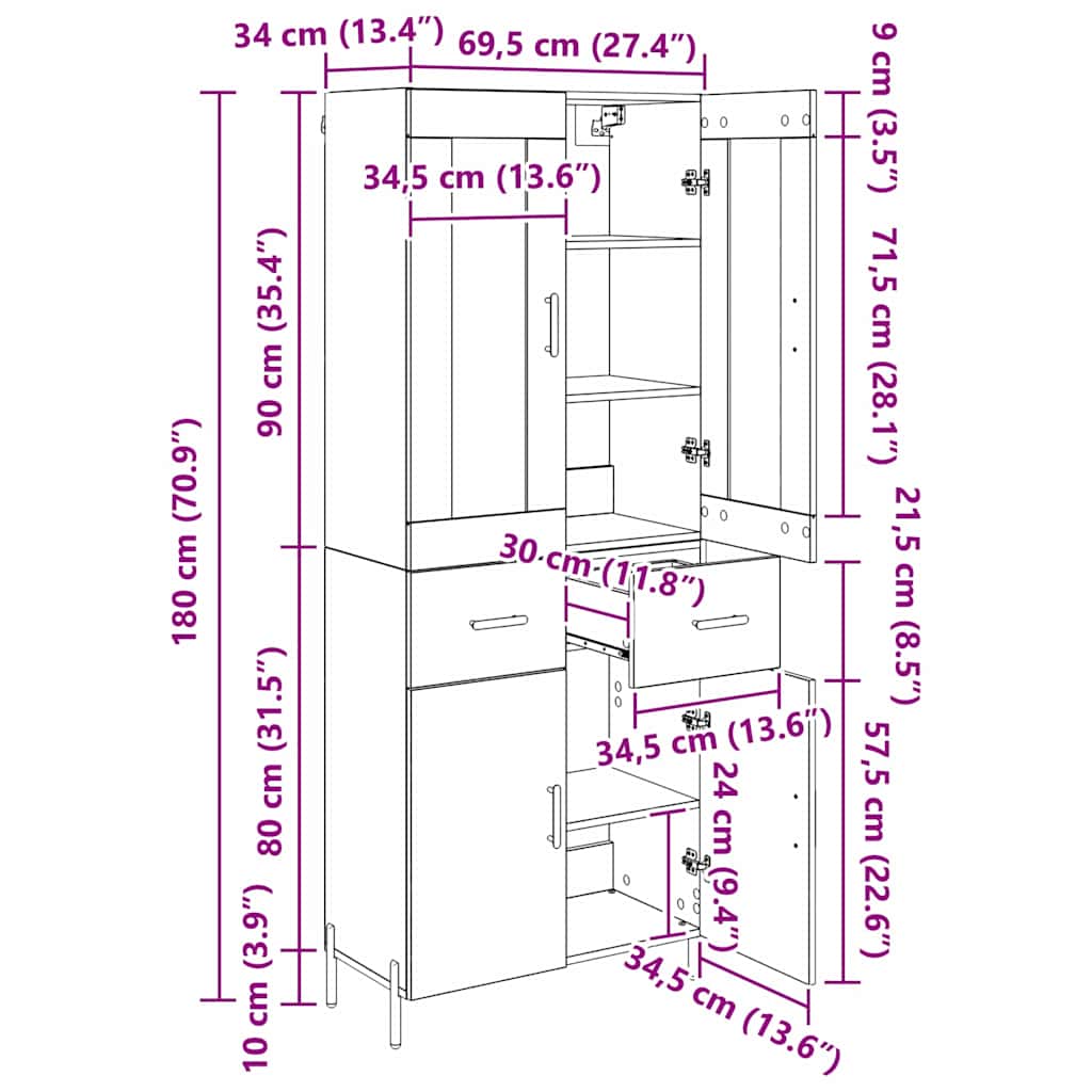 - 1 x Bovenkant voor Highboard: 69,5 x 34 x 90 cm (LxBxH)