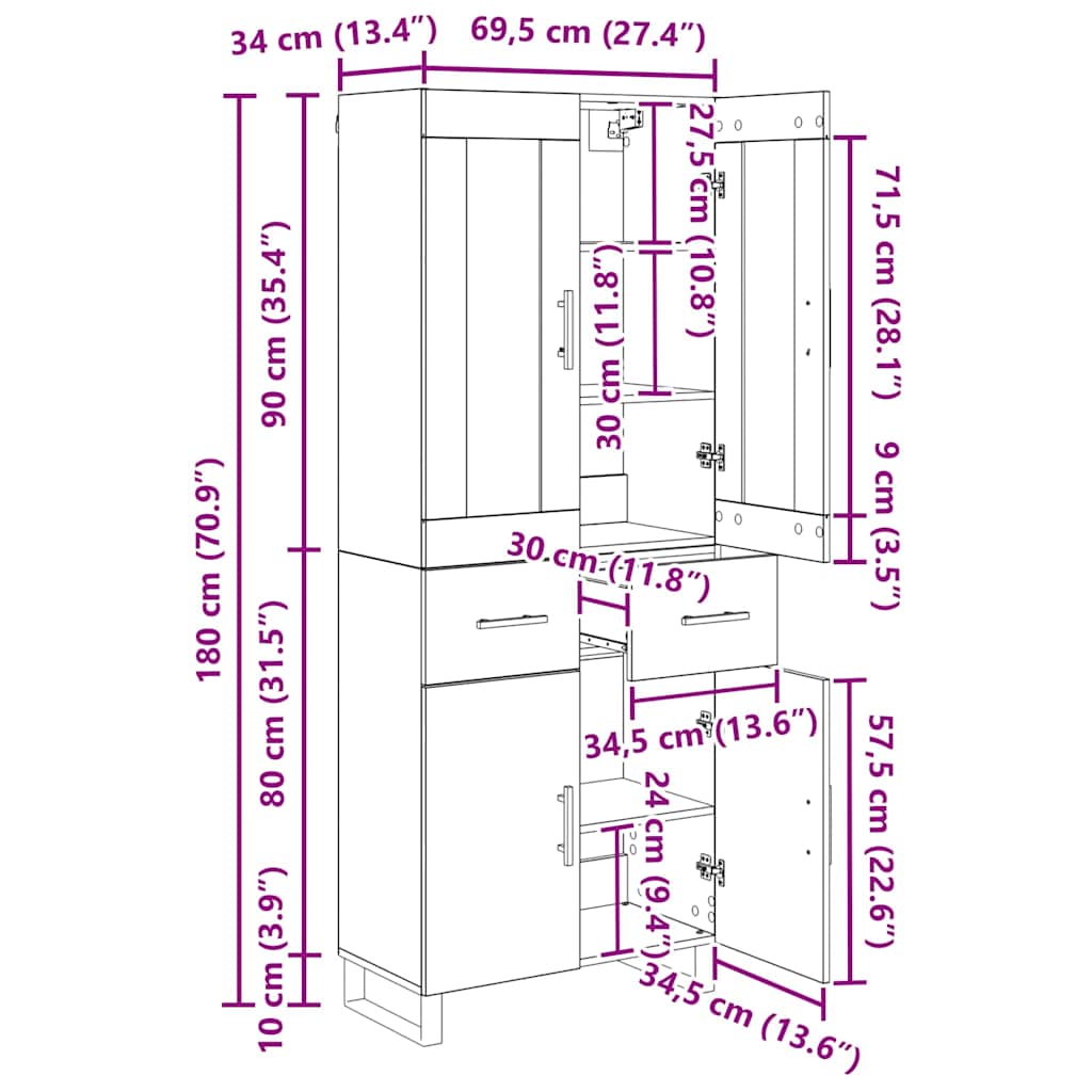 - Totale afmetingen: 69,5 x 34 x 180 cm (L x B x H)
