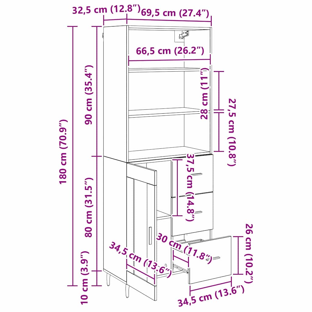 - 1 x Bovenkant voor Highboard: 69,5 x 34 x 90 cm(LxBxH)