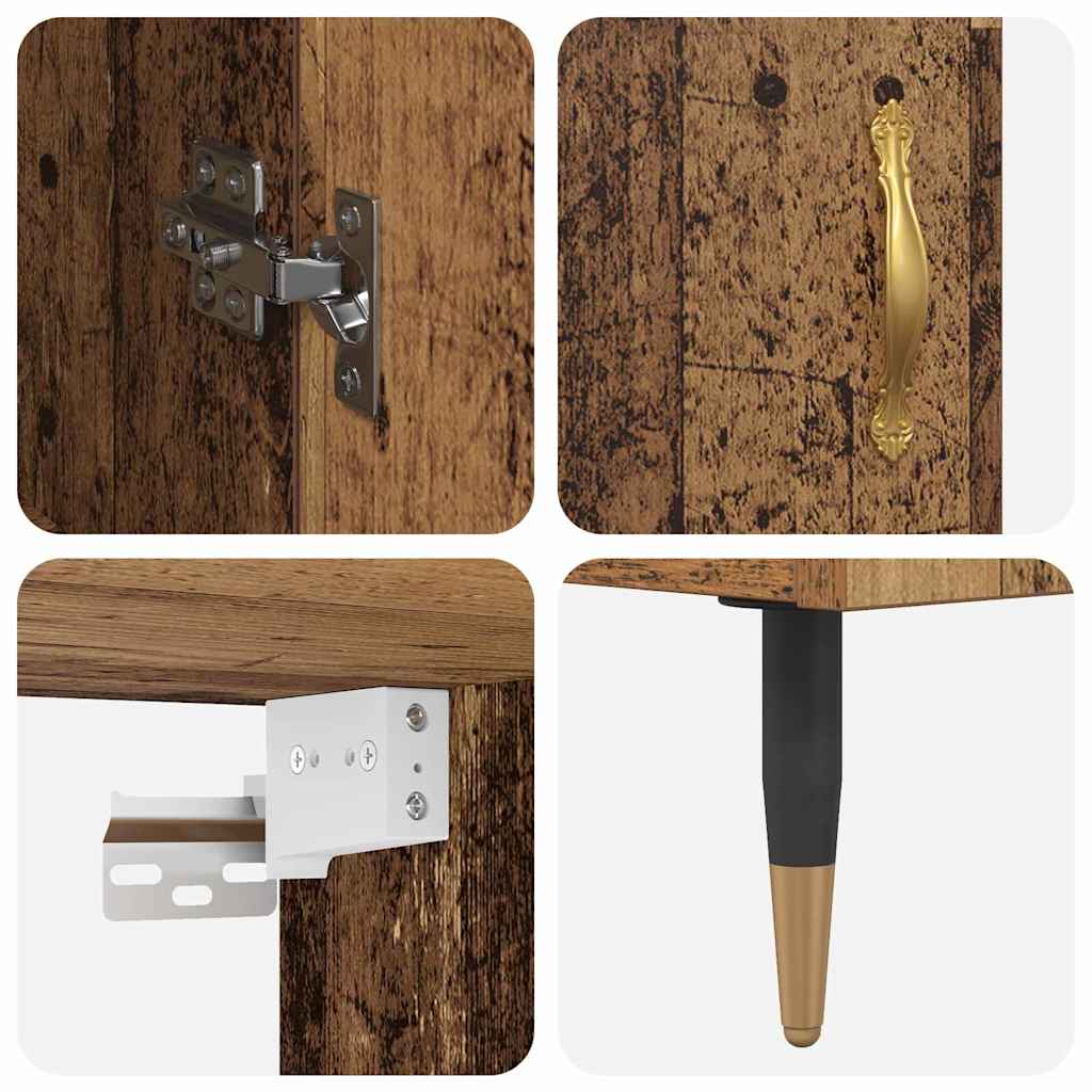 - Kenmerken / Functie / Ontwerp: De kast heeft metalen handgrepen met een matte gouden afwerking, wat luxe toevoegt aan de functionaliteit. Dit ergonomische ontwerp ziet er goed uit en zorgt dat je spullen makkelijk bereikbaar zijn. De taps toelopende poten van stevig metaal maken het meubel stabiel en modern.