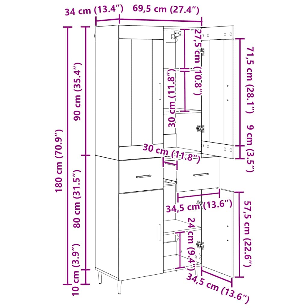 - Bewerkt hout vakmanschap Deze highboard is gemaakt van hoogwaardig bewerkt hout, dat zorgt voor duurzaamheid en weerstand tegen slijtage. Het meubel blijft er dagelijks als nieuw uitzien en heeft een elegante uitstraling. Deze sterke materiaalkeuze benadrukt de levensduur en onderhoudsgemak van het product.