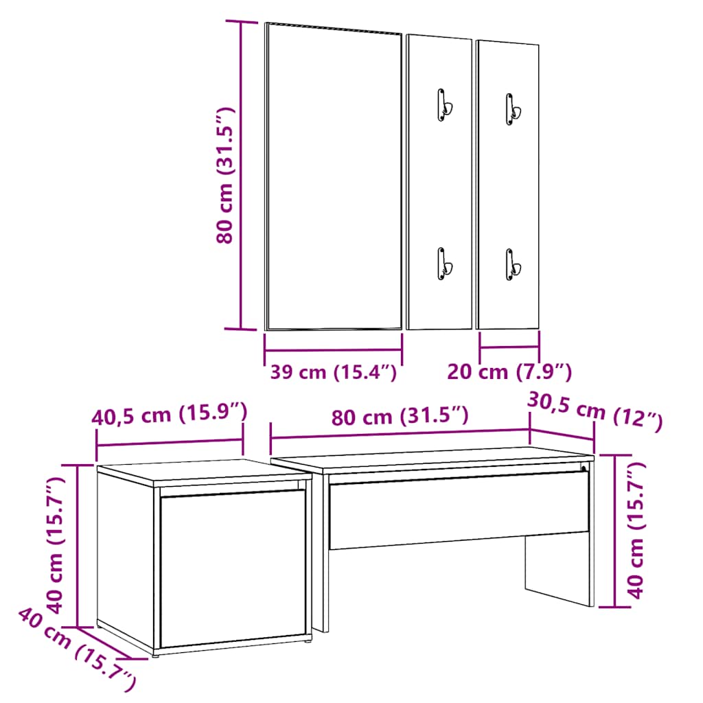 - Multifunctioneel gebruik: het bankje en de opbergbox met lade kunnen gebruikt worden als opbergruimte en als plek om decoratieve items op te plaatsen. Ze kunnen ook dienen als zitplaats wanneer je je schoenen aan- of uittrekt.