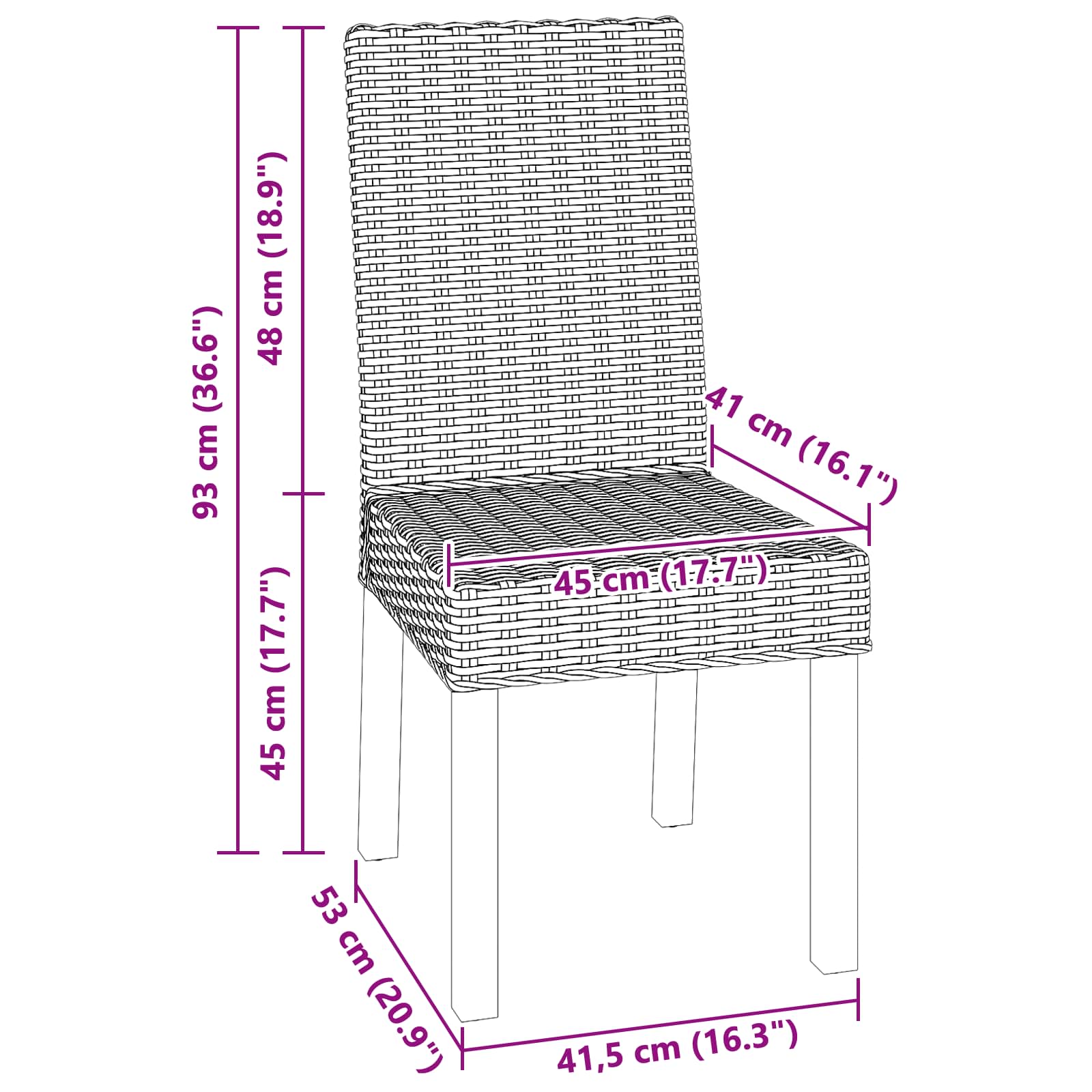 - Stoeldiepte: 41 cm