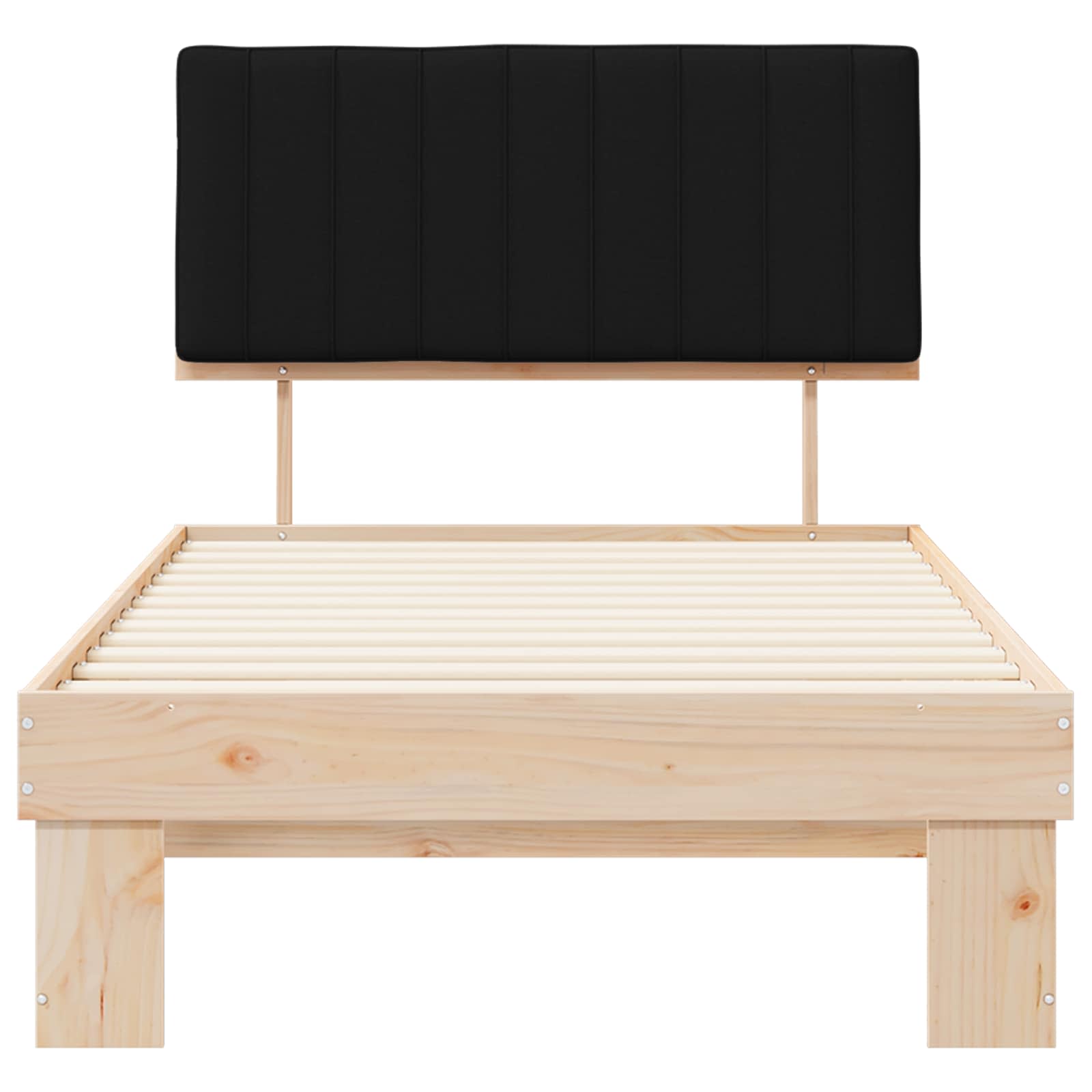 Dit houten bedframe met een gestoffeerd hoofdbord is een voorbeeld van modern ontwerp, met simpele lijnen en praktische elegantie, ideaal voor hedendaagse slaapkamers. Het massief grenenhout zorgt voor een stevige en stijlvolle basis, die rust en harmonie in de kamer brengt. De bekleding op het hoofdbord zorgt voor extra comfort en maakt het geheel aantrekkelijker.