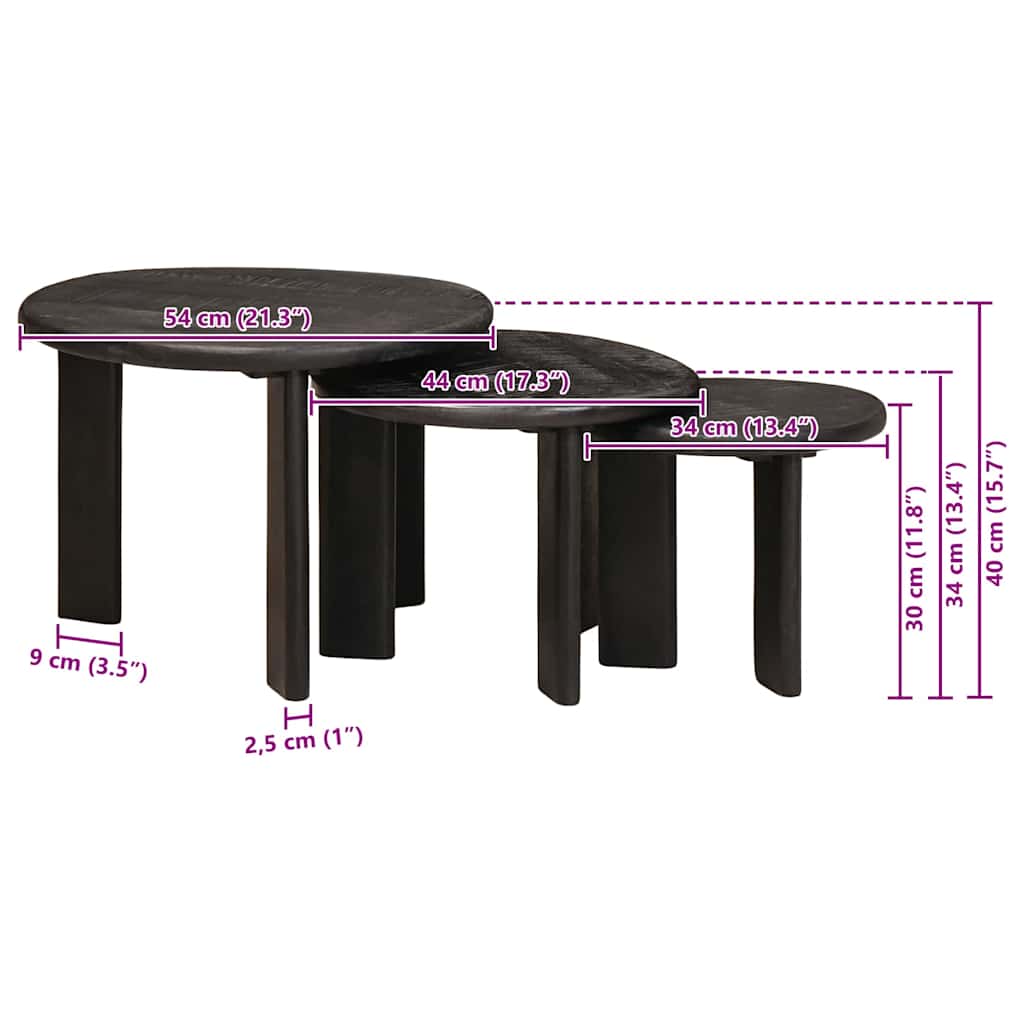 Deze stijlvolle set moderne nesttafels is perfect voor elke woonkamer die wat moderne flair wil toevoegen. Dankzij hun eenvoud en functie combineren deze tafels strakke lijnen met een minimalistisch design dat bij verschillende interieurstijlen past. Ze zijn eenvoudig te rangschikken zoals jij het wilt en bieden een mooie plek voor drankjes, tijdschriften of decoratie.
