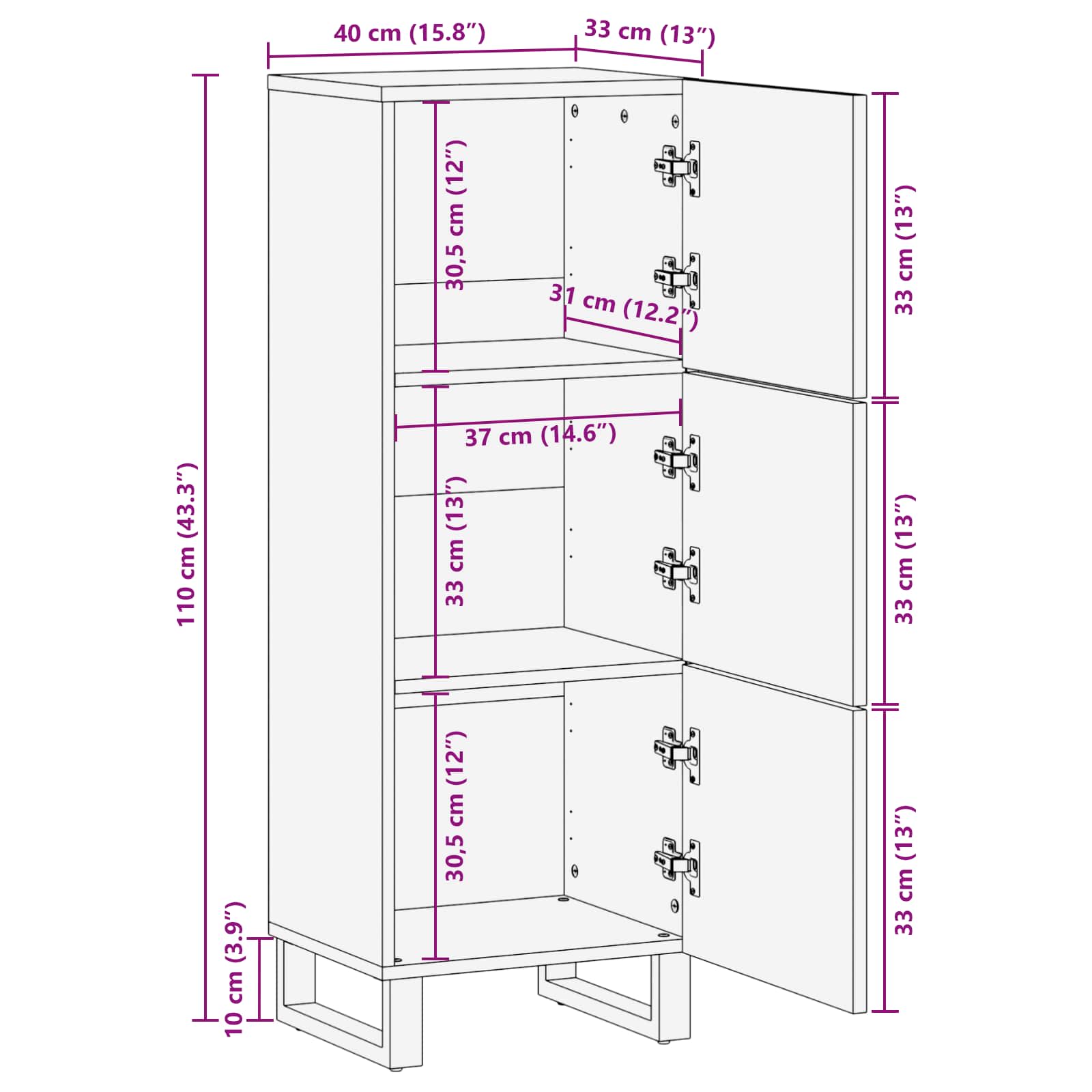 Deze elegante opslag hoogkast met afmetingen van 40 x 33,5 x 110 cm is een stijlvol meubelstuk gemaakt van massief mangohout. De verfijnde bruine afwerking maakt elke woonkamer meteen mooier. Hij biedt voldoende opbergruimte zonder te veel ruimte in te nemen, perfect voor iedereen die een mooie en functionele oplossing zoekt. Het ontwerp is slim en stelt je in staat om je spullen op een aantrekkelijke manier op te bergen.