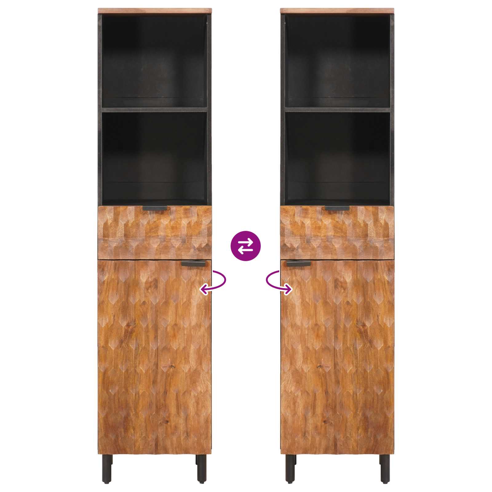 - Materialen: Gemaakt van mooi massief mangohout dat stevig en duurzaam is. De warme tinten geven je badkamer extra sfeer en de unieke houtstructuren maken elke kast uniek.