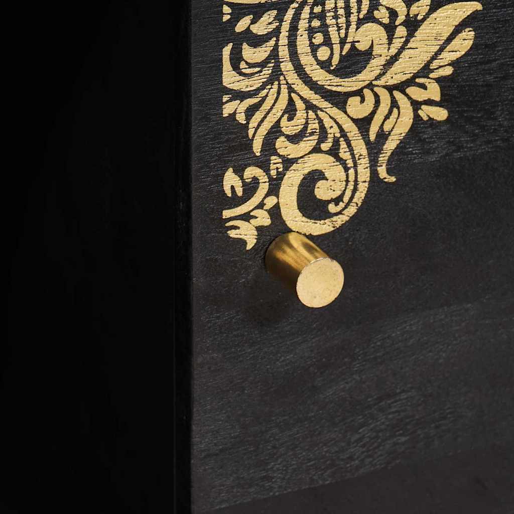 - Kenmerken / functie / ontwerp: Het dressoir is versierd met gouden prints en is zowel mooi als praktisch. De scharnierdeuren met messing knoppen openen naar een uitgebreide opbergruimte, perfect voor het organiseren van spullen in verschillende formaten.