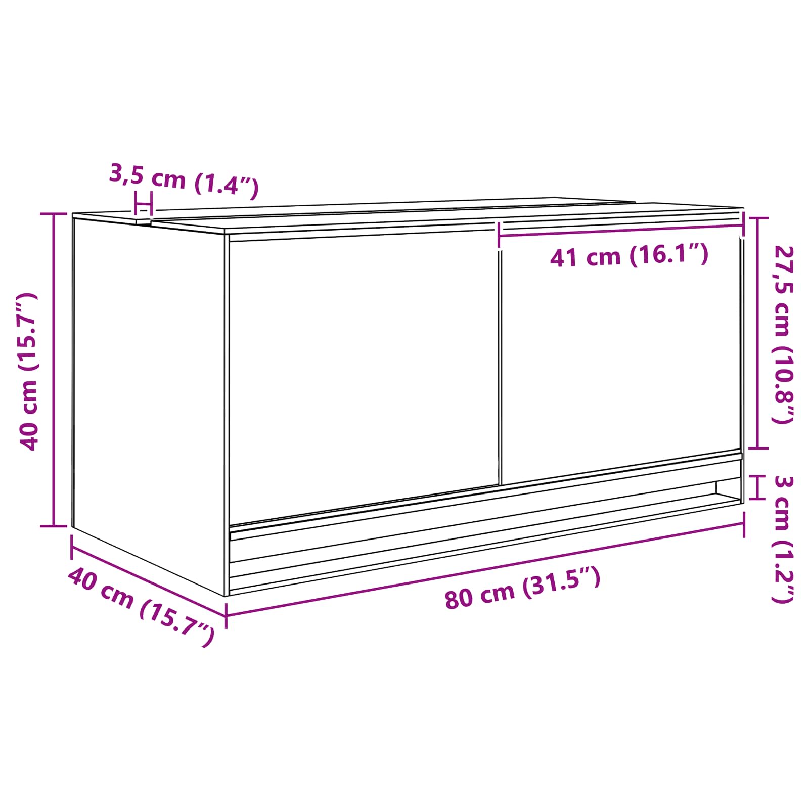 - Totale afmetingen: 80 x 40 x 40 cm (L x B x H)