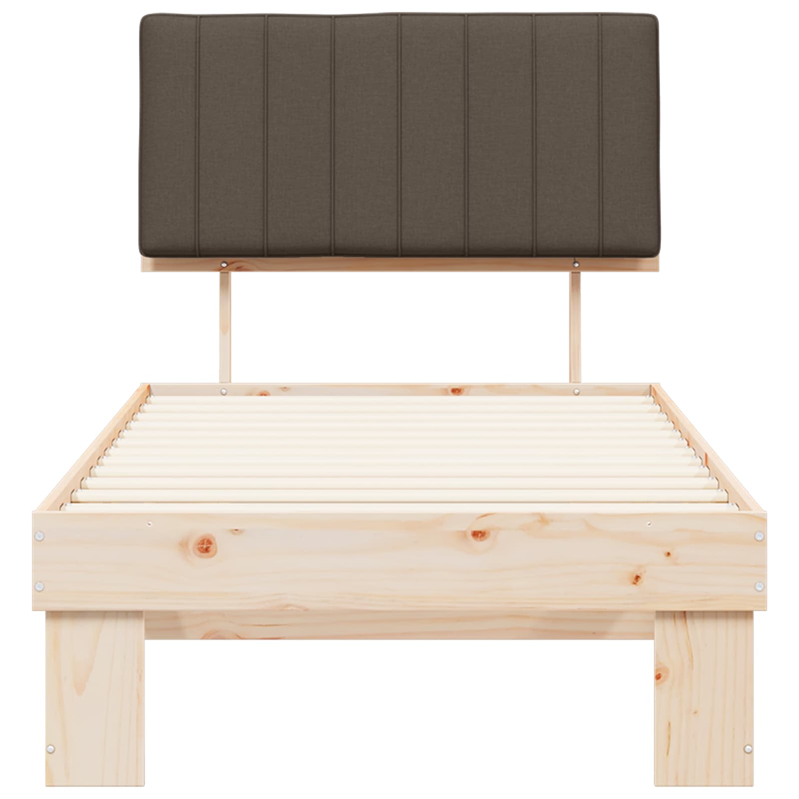 Dit houten bedframe met een gestoffeerd hoofdbord is een voorbeeld van modern ontwerp, met simpele lijnen en praktische elegantie, ideaal voor hedendaagse slaapkamers. Het massief grenenhout zorgt voor een stevige en stijlvolle basis, die rust en harmonie in de kamer brengt. De bekleding op het hoofdbord zorgt voor extra comfort en maakt het geheel aantrekkelijker.