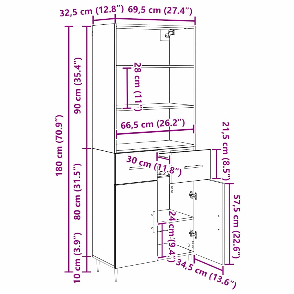 - 1 x Top voor highboard: 69,5 x 34 x 90 cm(LxWxH)