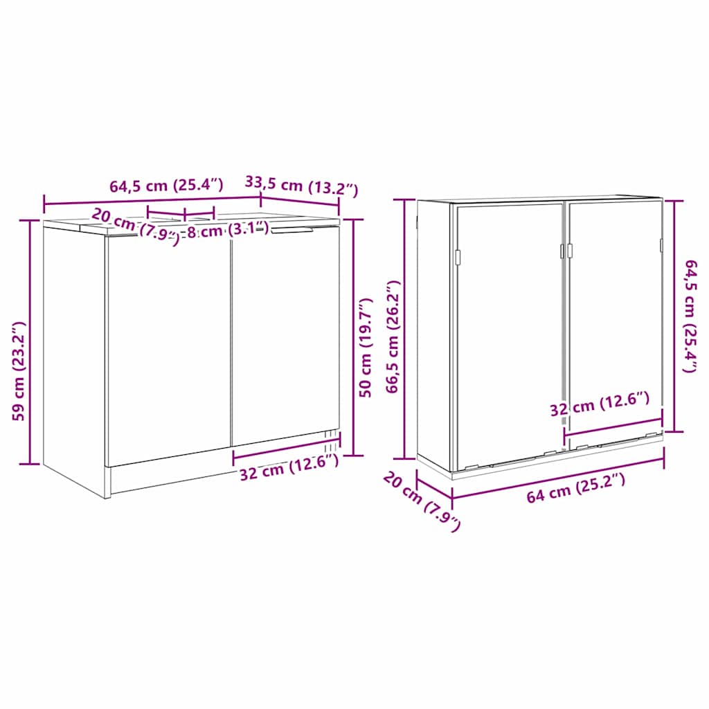 - 1 x wastafelmeubel: 64,5 x 33,5 x 59 cm (LxBxH)