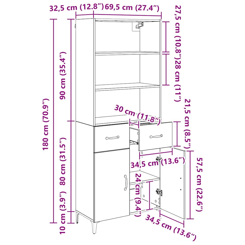- Totale afmetingen: 69,5 x 34 x 180 cm (L x B x H)