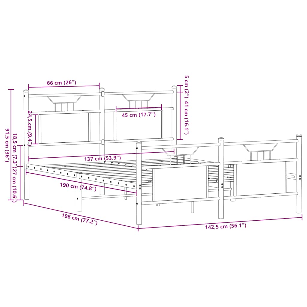 - Lattenbodem voor optimale ondersteuning: Het metalen bedframe is voorzien van een lattenbodem voor ondersteuning en ademend vermogen van uw matras.