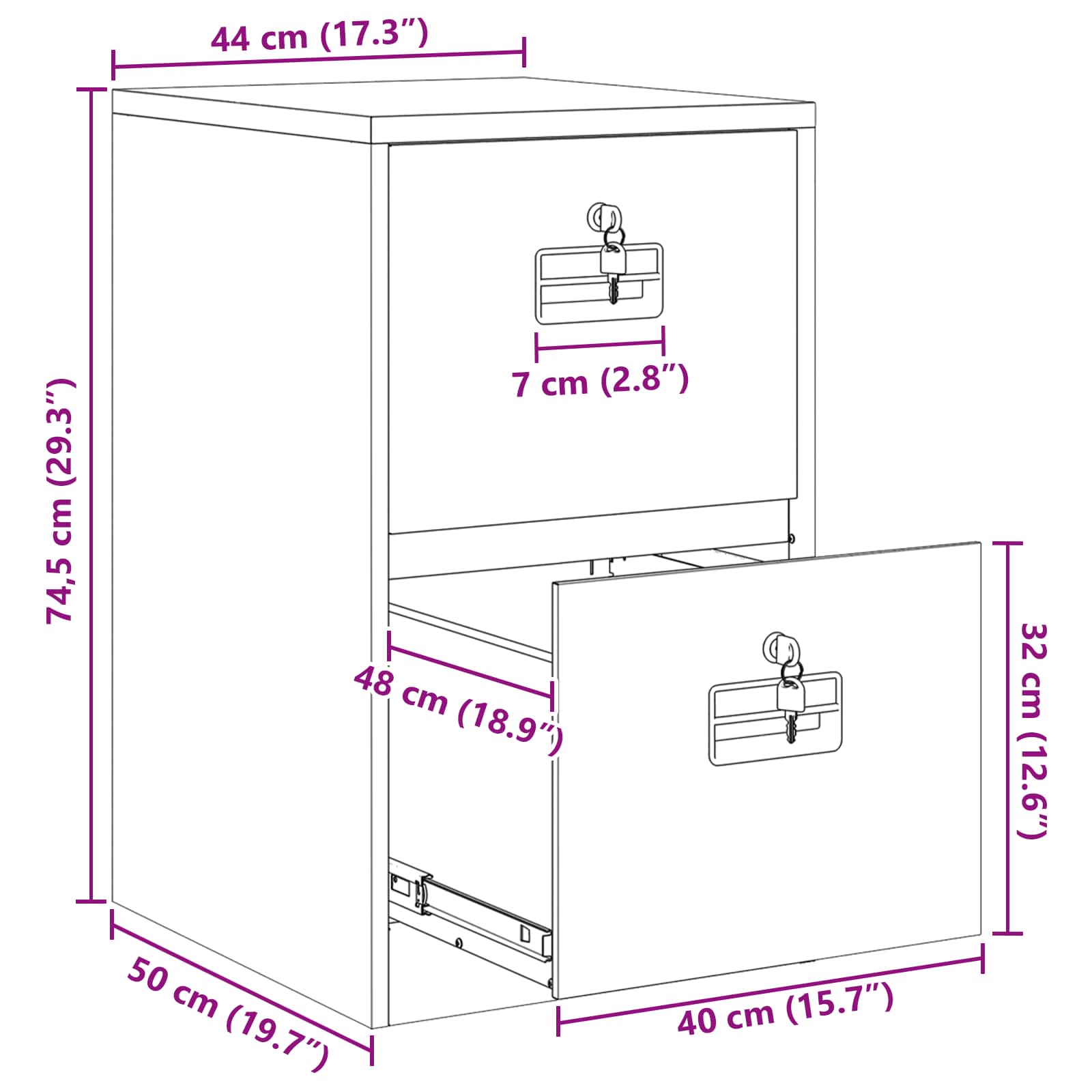 - Totale afmetingen: 44 x 50 x 74,5 cm (L x B x H)