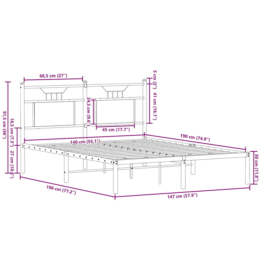 - Lattenbodem voor optimale ondersteuning: Het metalen bedframe is voorzien van een lattenbodem voor ondersteuning en ademend vermogen van uw matras.