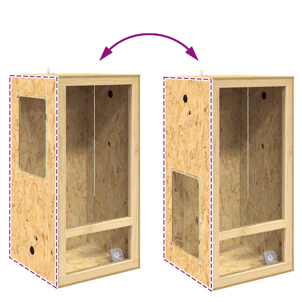Dit OSB terrarium is een vierkante behuizing, perfect voor reptielen en amfibieën. Het biedt een mooie mix van functionaliteit en een stoere uitstraling. De combinatie van OSB en sterk glas zorgt voor een veilig en goed zicht, waardoor het ideaal is voor binnenhabitats.