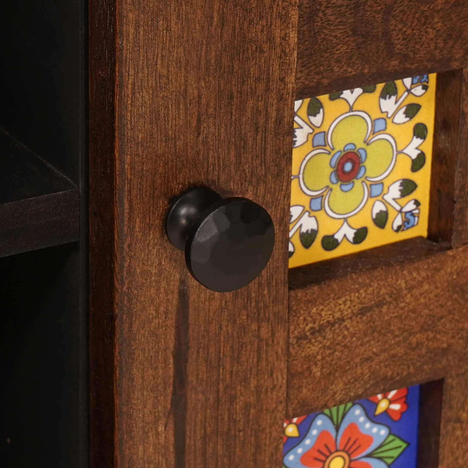- Functionele componenten: Met een afgewerkte achterkant en stevige houten poten, en scharnierdeuren met knoppen, is het een mooie én praktische kast. Elk onderdeel is met zorg gekozen voor een goed ontwerp en gebruiksgemak.