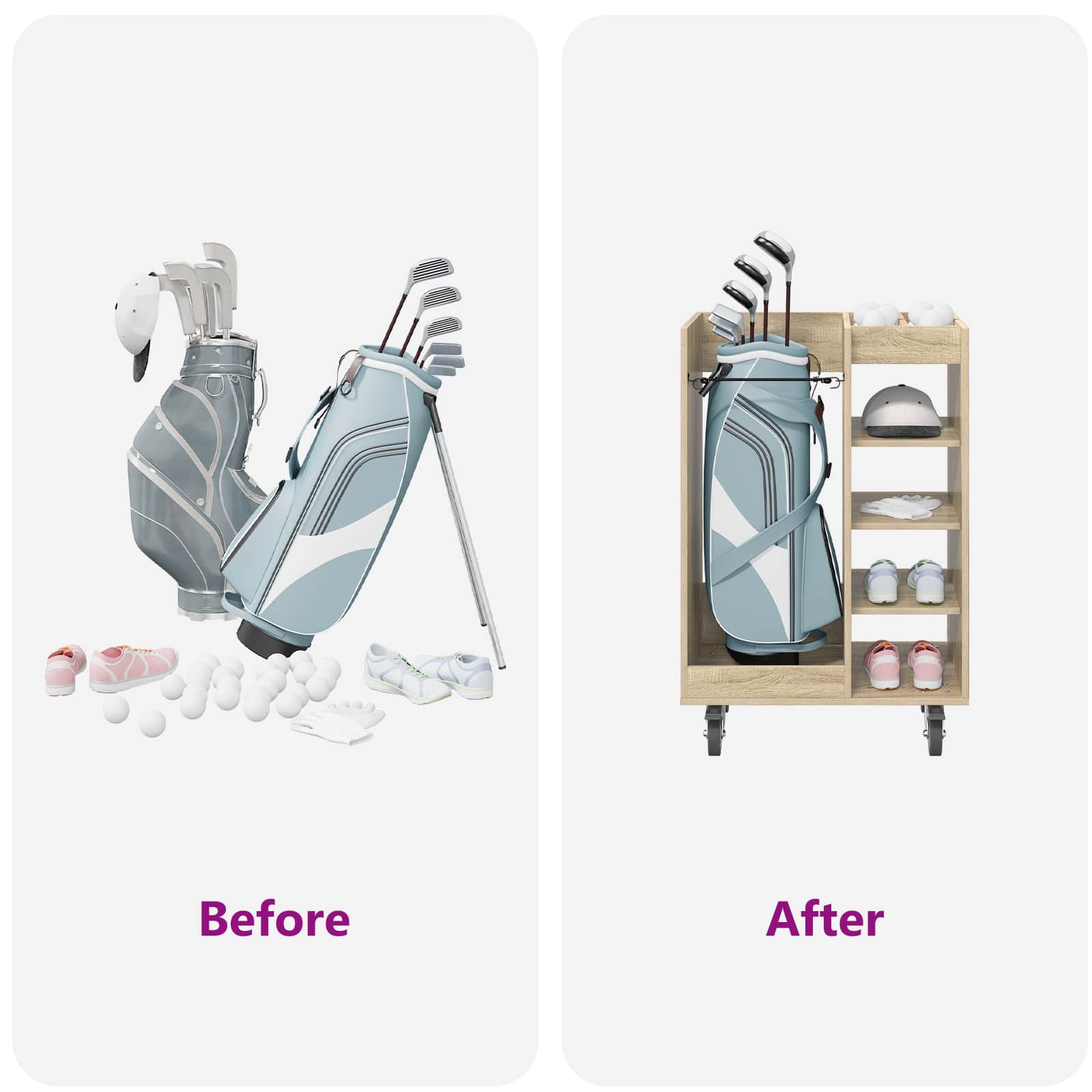 - Aangeraden Gebruik: Perfect voor garages of binnenruimtes waar je veelzijdige opslag nodig hebt. Of het nu gaat om golfuitrusting of andere spullen, het kan overal staan waar het past. Dit meubel gaat verder dan alleen sport en is ook handig voor andere opslagbehoeften.