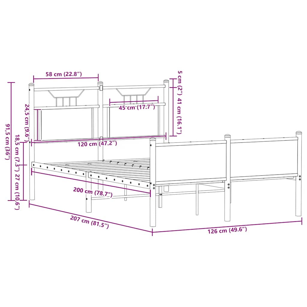 - Lattenbodem voor optimale ondersteuning: Het metalen bedframe is voorzien van een lattenbodem voor ondersteuning en ademend vermogen van uw matras.