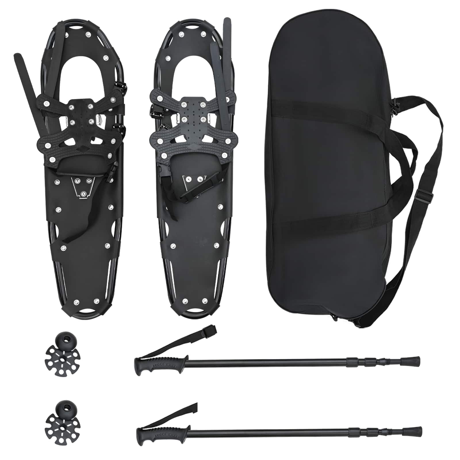 - Complete set: In de verpakking vind je sneeuwschoenen, verstelbare wandelstokken en een handige tas, ideaal voor wie alles in één keer wil kopen. Elk onderdeel is ontworpen voor makkelijk transport en opbergen, dus je bent altijd klaar voor je avontuur.