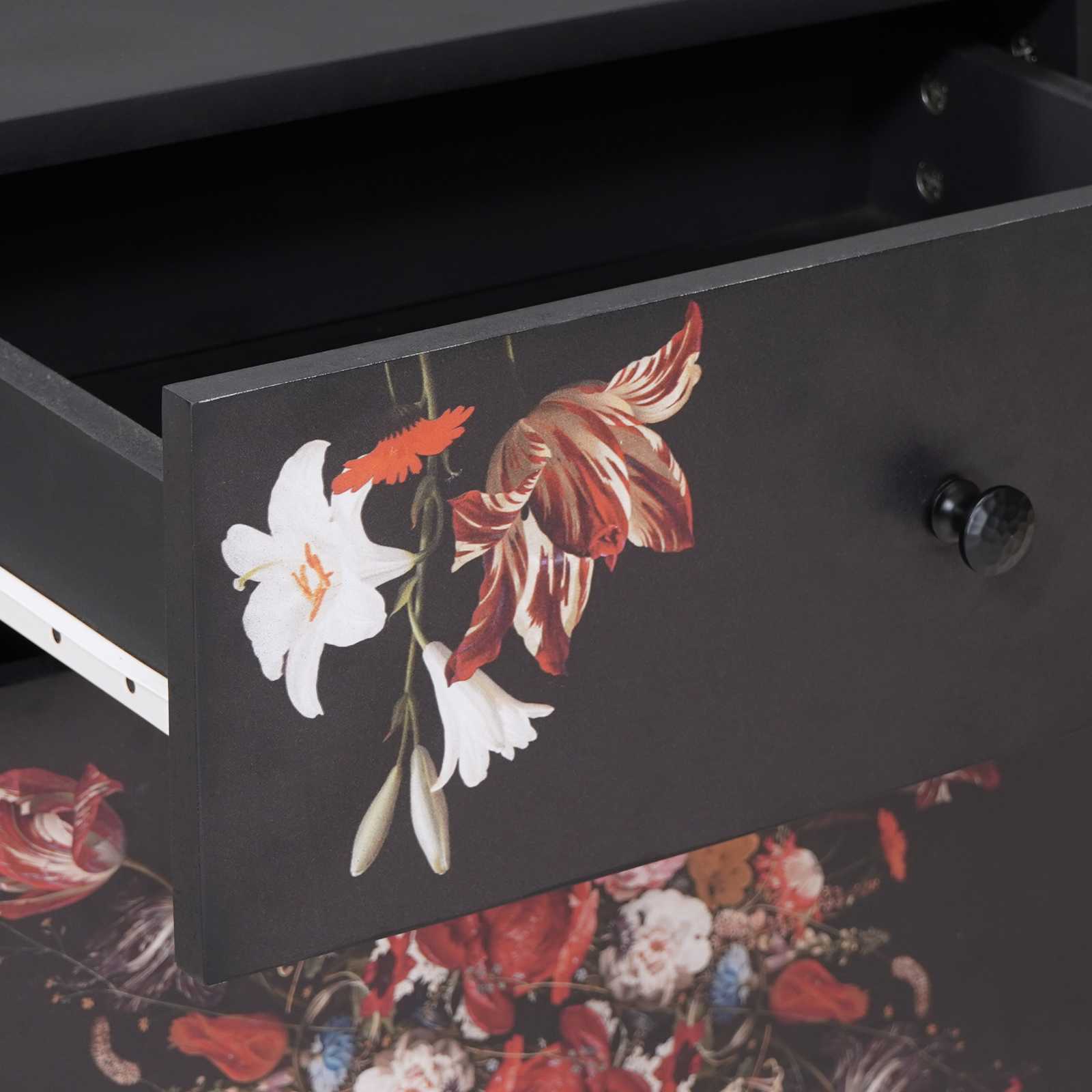 Dit moderne nachtkastje is ontworpen voor functionaliteit en minimalisme. Het past perfect in je slaapkamer met zijn eenvoudig, maar chique uiterlijk. De strakke lijnen en kleurrijke afwerking maken het niet alleen handig voor opberging, maar geven ook een artistieke touch door het bloemenpatroon. Ideaal voor je lamp, wekker of persoonlijke spullen, dit nachtkastje is een veelzijdige en stijlvolle aanvulling voor elke eigentijdse ruimte.