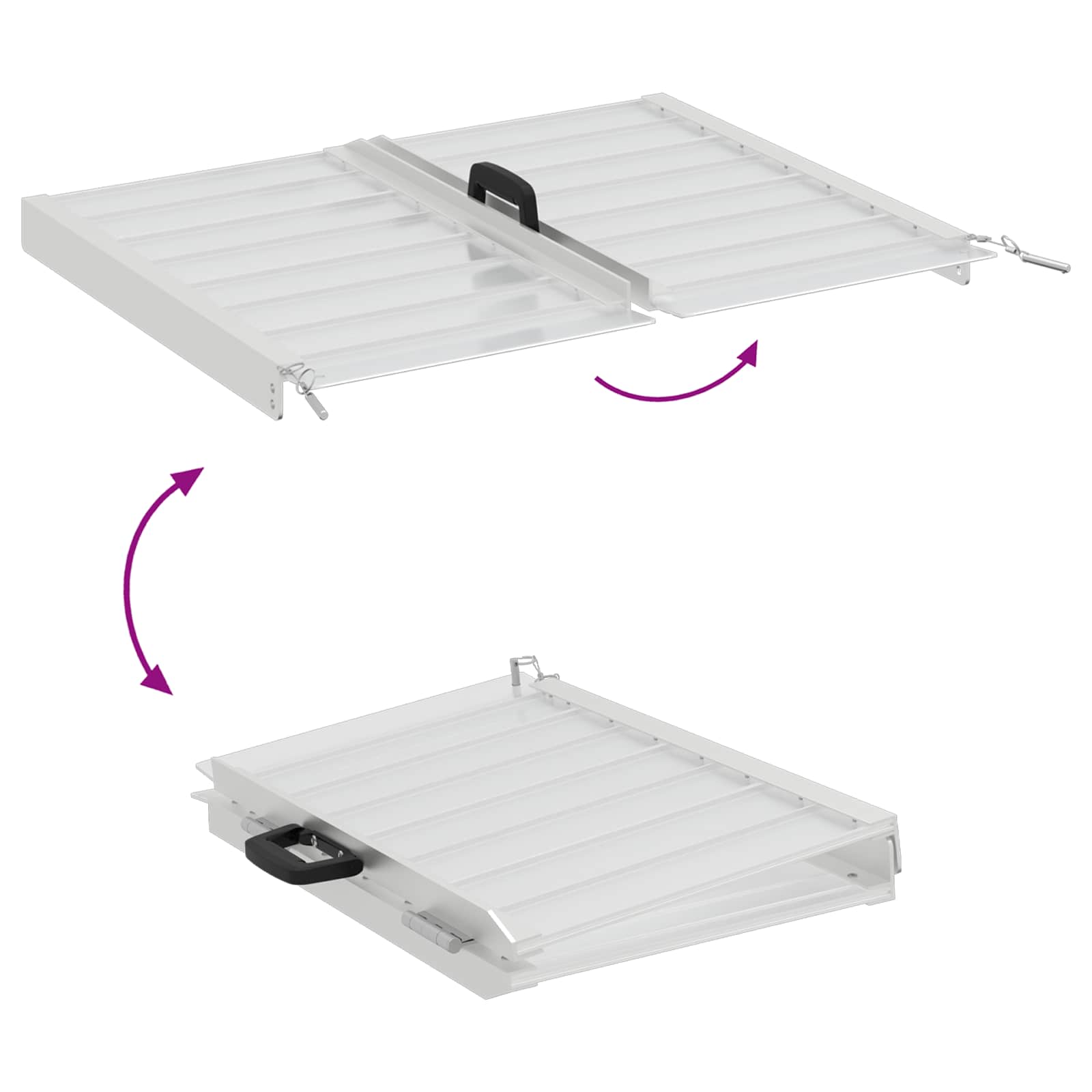 - Opvouwbaar ontwerp De oprijplaat vouwt handig op, waardoor je hem slim kunt opbergen of meenemen in een auto. Perfect voor elk type woning, het opvouwbare ontwerp bespaart ruimte en biedt een praktische oplossing voor toegankelijkheid.